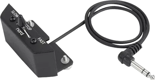 With the Half Moon Switch you can control the speed of the built-in rotating speaker simulation as well as an external rotary speaker connected via the 11-pin Leslie connection. The Half Moon Switch offers 3 speed settings (slow - stop - fast) and is easily attached without the use of any tools at various locations along the left side of the lower manual.