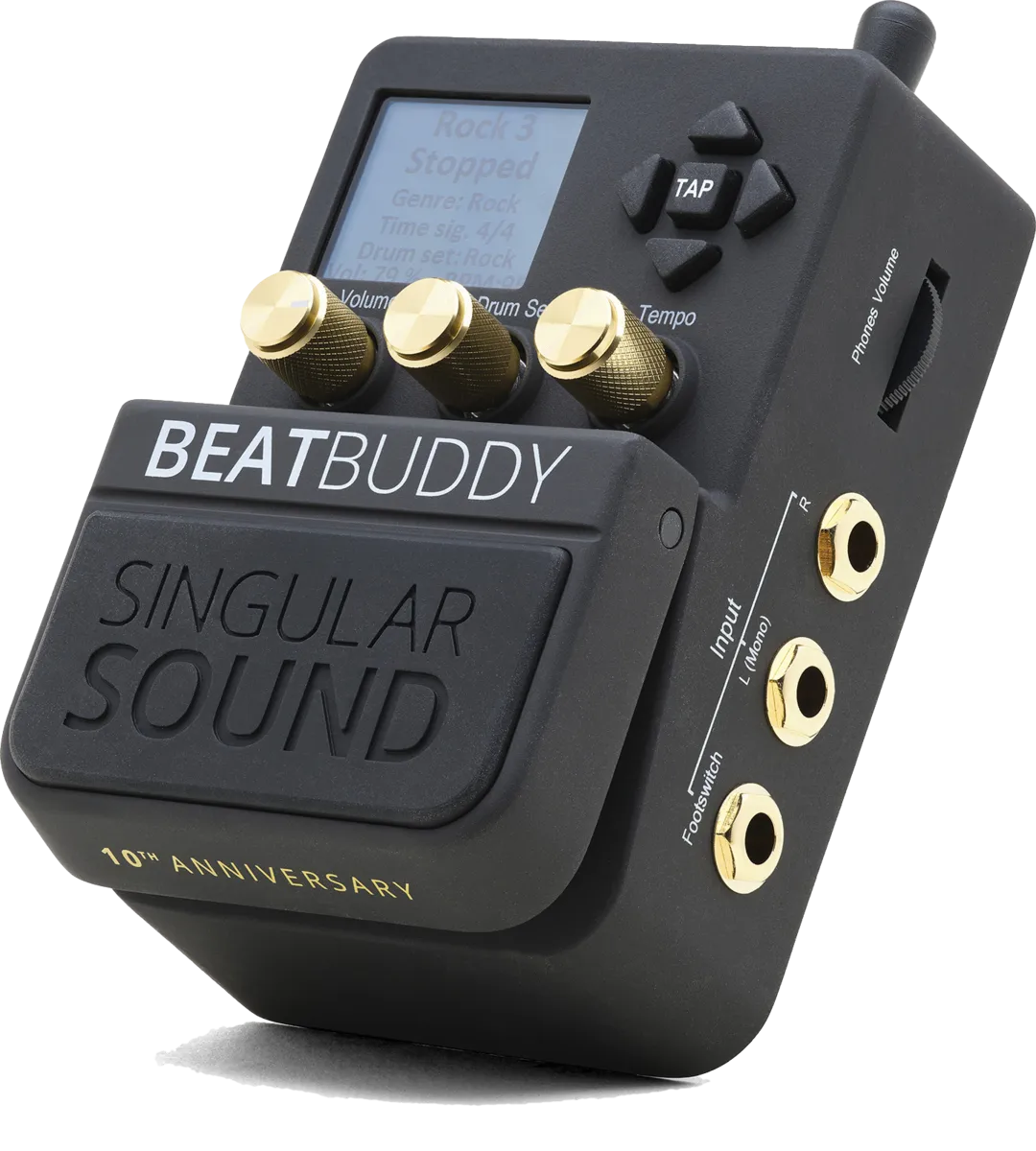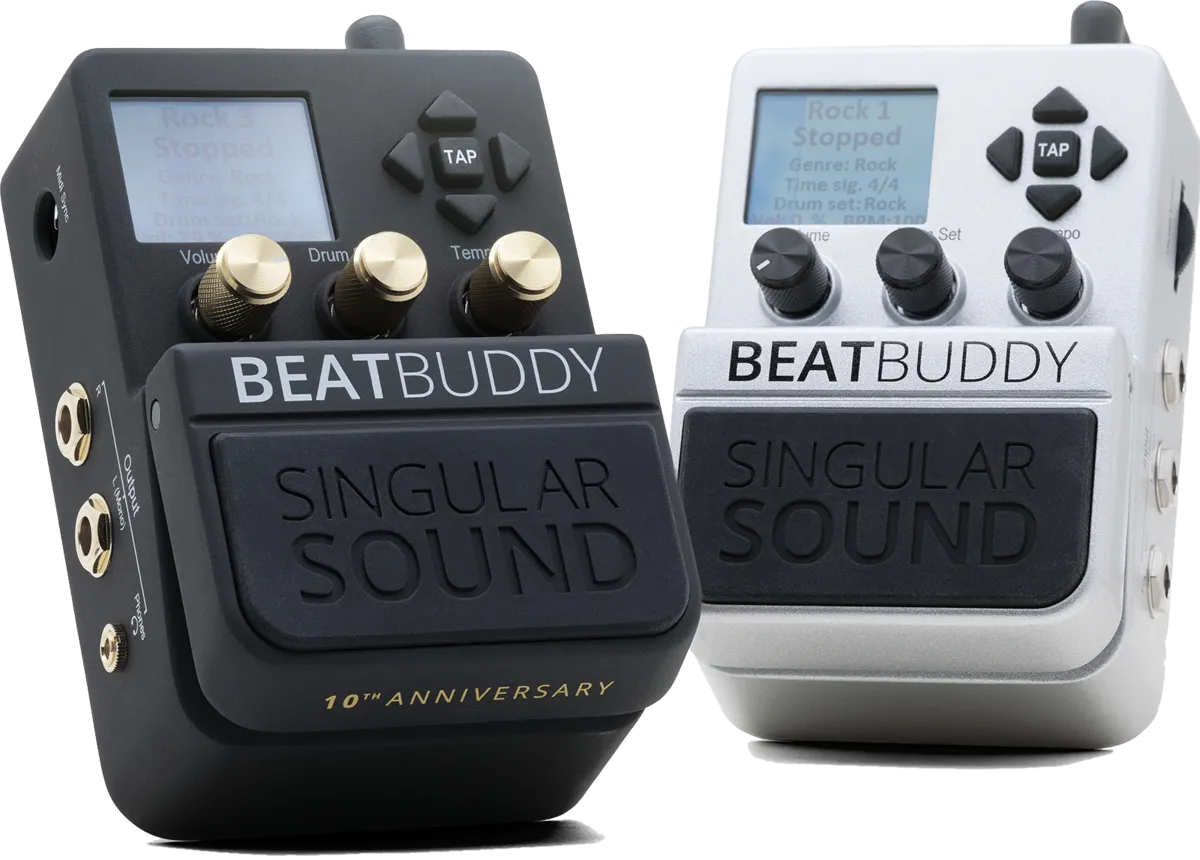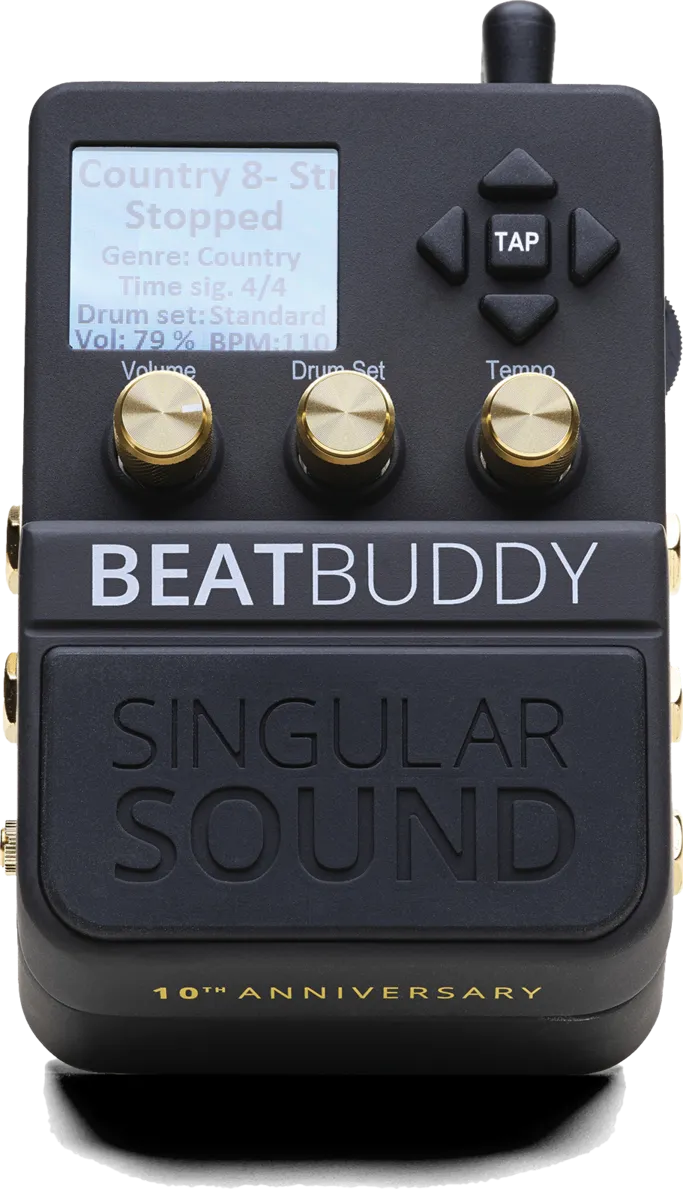 Singular Sound celebrates 10 years of the Beat Buddy pedal with a new look, just like the Aeros Looper and Maestro MIDI Controller.A top-of-the-range, evolutionary model for the most demanding users, the Beatbuddy opens up the field of possibilities thanks to its advanced features. From combining all the drum styles in the pedal to designing and editing your own drum kits, anything is possible! All the contents of the pedal (kits, songs, sounds) can be edited using the downloadable BeatBuddy Manager software or its new Online version.