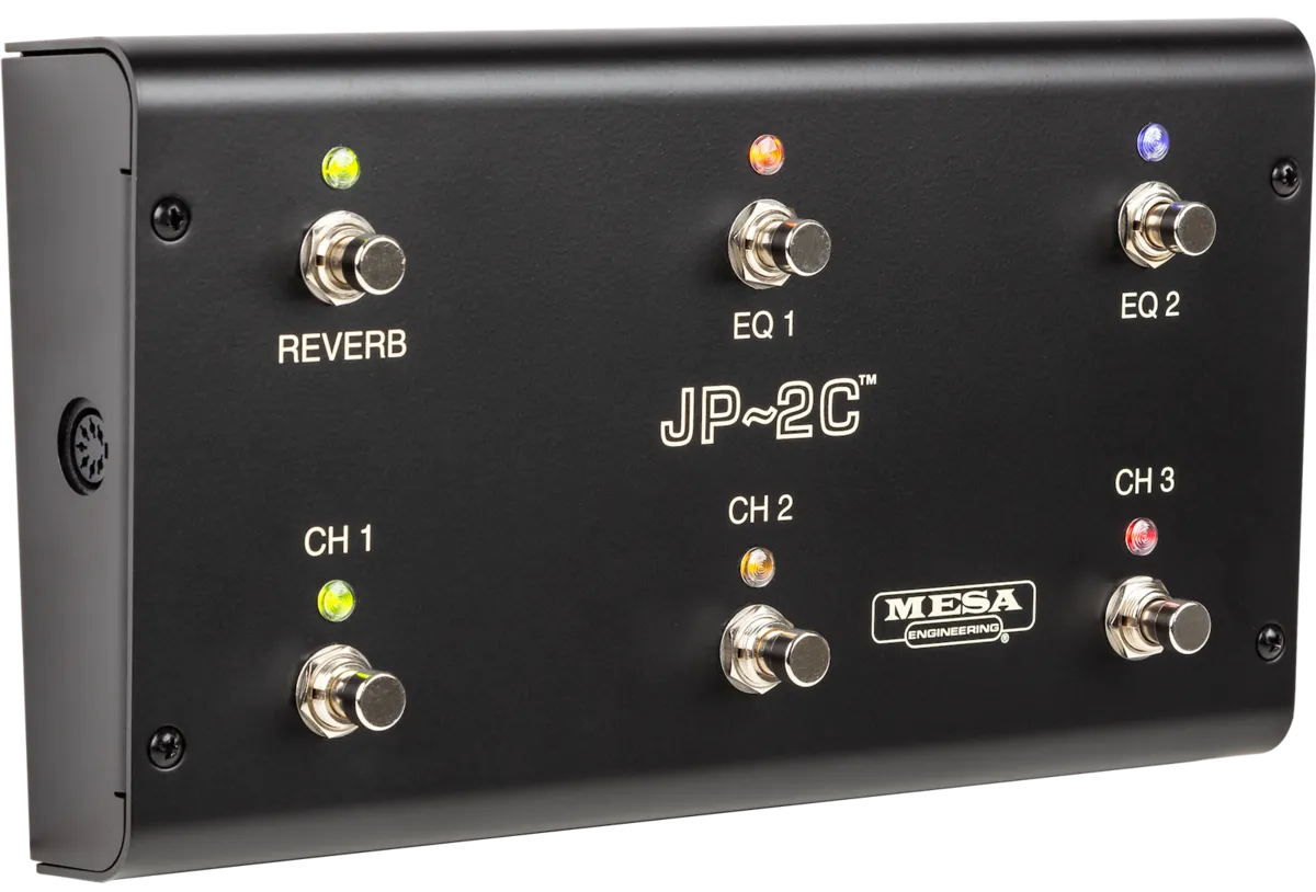 Much like a race car or fighter jet, the JP-2C strips down to bare essentials to get the job done effectively and in the simplest way. It's a purpose-built, no-compromise rendering that aims at one single goal; provide the most aggressive, purest sounding lIC+ in a versatile package that delivers the goods to meet John's recording and stage needs. The JP-2C offers the highest headroom Clean sounds of any Mark Series amp, one Boogie Lead Channel for tight, grinding rhythm work, and a slightly higher gain Boogie® Lead Channel, with access to even more saturation yet the ability to track any technique and speed while also reaching to the stratosphere for single note solos. In that spirit, unlike other MESA amplifiers, the JP-2C foregoes the concept of multiple voicing Modes per channel and instead dedicates each of the three Channels exclusively to one of two voicings from the MARK IIC+. In Channels 2 and 3, it also adds a SHRED Mode, which further enhances the top-end harmonic layering of the original lIC+ Lead Circuit.