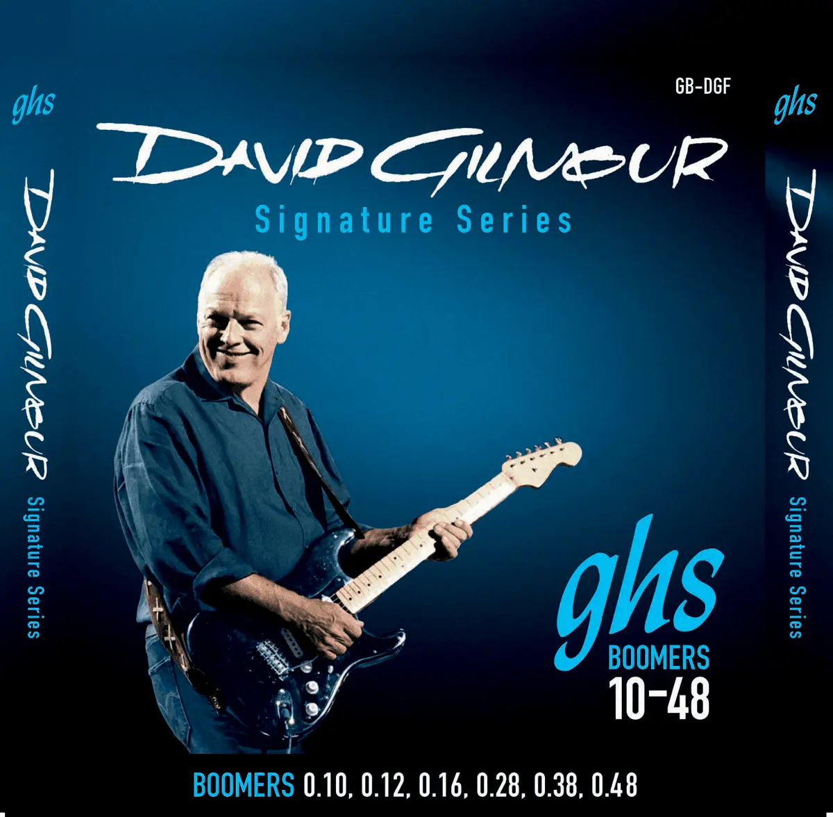 David Gilmour's connection with GHS Boomers™ goes back to 1979, when he started using them on Pink floyd's "The Wall" project. He uses gauges 10, 12, 16, 28, 38, and 48 on his Fender Stratocaster™, and gauges 10.5. 13, 17, 30, 40, and 50 on his Gibson Les Paul™. Decide for yourself which is right for you!