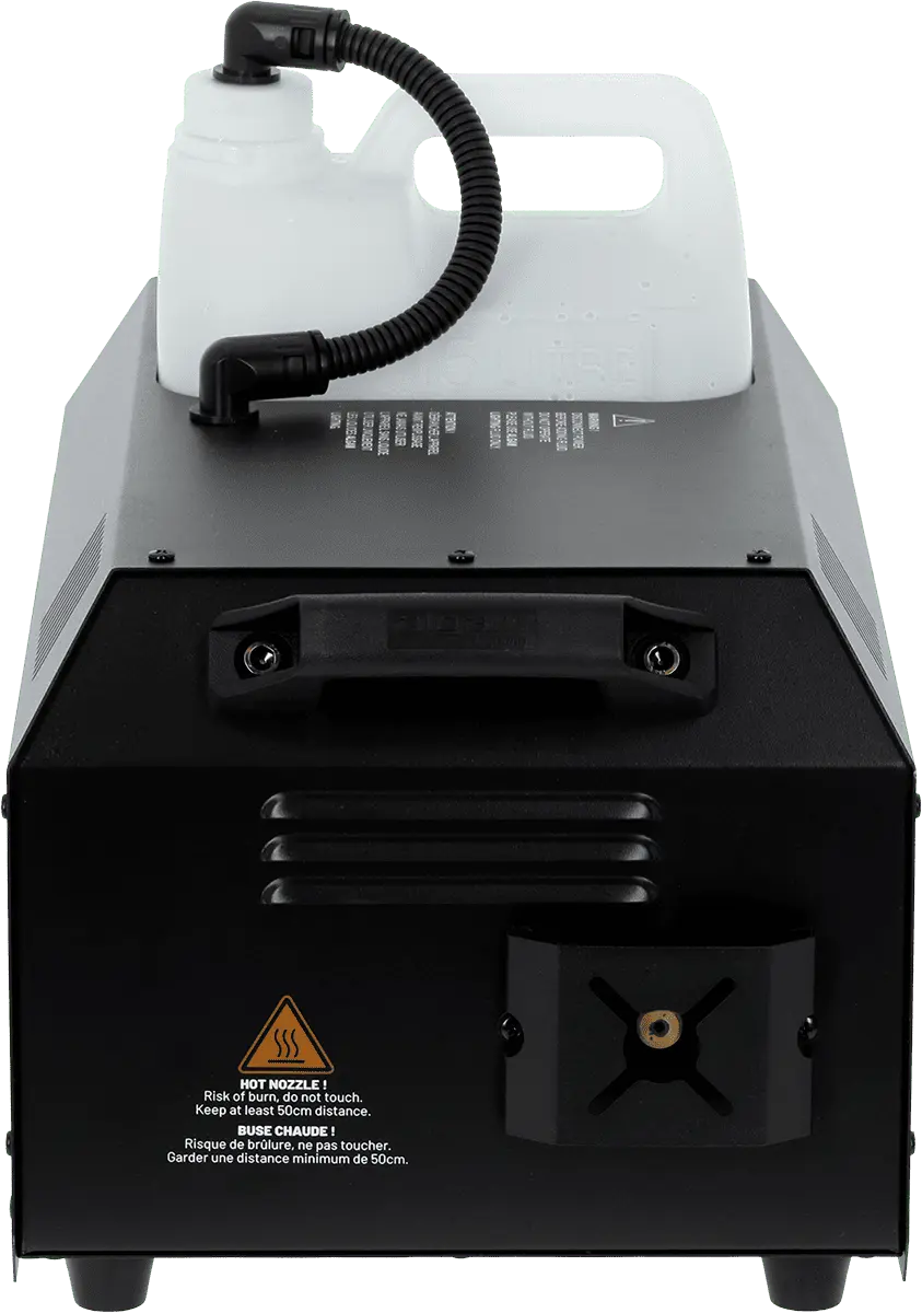 The S2000 by Algam Lighting stands out for its ability to produce a large volume of dense, uniform smoke, ideal for enhancing your lighting effects and creating an immersive atmosphere. Its 1500 W heating element, ready in just 5 minutes, guarantees quick start-up. With an output of 850 m³/min and a jet reaching 6 meters, it meets the needs of large stages, outdoor events, or fixed installations. Its maximum jet duration of 30 seconds delivers strong effects, with the integrated shut-off valve allowing precise control of the projection to match each sequence.