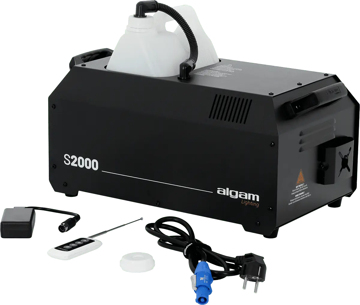 Thanks to its 5-liter tank, the S2000 offers extended autonomy for long performances without interruptions. The included adapter cap allows you to use Algam Lighting 5-liter smoke fluid canisters directly, avoiding unnecessary handling and reducing refill time. This setup simplifies logistics and ensures continuous operation, even during intensive events.
