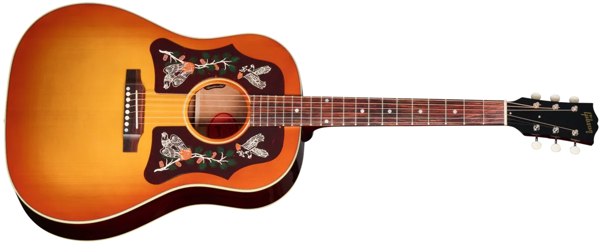 Soaring high and transcending musical boundaries The music of multiple award-winning artist Margo Price transcends the boundaries of traditional country, Americana, and classic rock, and her Gibson J-45™ acoustic has always been by her side during her rise as top country artist. Gibson Custom's Margo Price J-45 embodies the spirit, vision, and talent that has driven Margo to stardom and continues the nature-themed model tradition of Gibson. The Margo Price J- 45 was inspired by a her mid-60s J-45, a guitar she's called "my main baby; my guitar I play all the time." The Margo Price J-45 features a slightly thinner mahogany body with a red spruce top with traditional hand-scalloped advanced X-bracing, a mahogany neck with Rounded profile and rosewood fretboard, and Grover® strap tuners with white buttons. The nut and saddle are bone, and the bridge pins are TUSQ®. The Margo Price J-45 also comes equipped with L.R. Baggs™ electronics, so it's studio and stage-ready right out of the included hardshell case. Margo was also inspired by red-tailed hawks, which feature prominently on the distinctive double 50s-style pickguards of her new signature guitar. As Margo says, "Red-tailed hawks have always been symbolistic to me. I see them everywhere, and I always have, as they are common all over the United States, but to me, they are otherworldly, and they always come to me in my time of need with messages of strength and perseverance. Red, as a color, relates to love, passion, and even anger, matters that we typically would associate with the heart, but if you look closely, the ends of the feathers are dipped in white, and the bird itself has a spiritual nature to them. When I'm on long road trips, look out the window and count them alongside the highway. They pass over me at the most kismet times, reminding me to find strength in my vulnerability and to open up and connect to those around me. hope this guitar will remind those who play it these lessons as well."