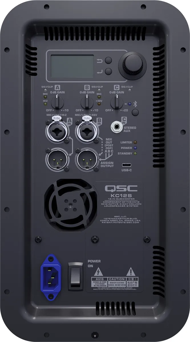 The highly portable KC12 system consists of a ported subwoofer, housing a 12-inch driver extending down to 40 Hz. The groundbreaking design of the mid/high enclosure features a 1-inch compression driver combined with the innovative QSC LEAF™ (Length-Equalized Acoustic Flare) waveguide, as well as two high-excursion 4-inch midrange drivers. Thanks to this 3-way design, the system provides an outstanding full-range horizontal coverage of 145 degree, and 35 degrees of audience-directed vertical coverage, with clean and natural sound at all output levels.