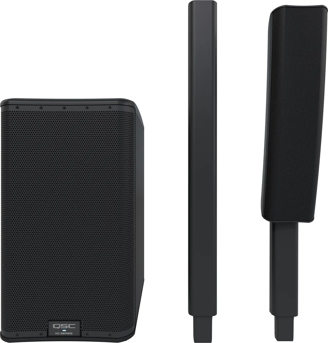 ​The highly portable KC12 system consists of a ported subwoofer, housing a 12-inch driver extending down to 40 Hz. The groundbreaking design of the mid/high enclosure features a 1-inch compression driver combined with the innovative QSC LEAF™ (Length-Equalized Acoustic Flare) waveguide, as well as two high-excursion 4-inch midrange drivers. Thanks to this 3-way design, the system provides an outstanding full-range horizontal coverage of 145 degree, and 35 degrees of audience-directed vertical coverage, with clean and natural sound at all output levels.​