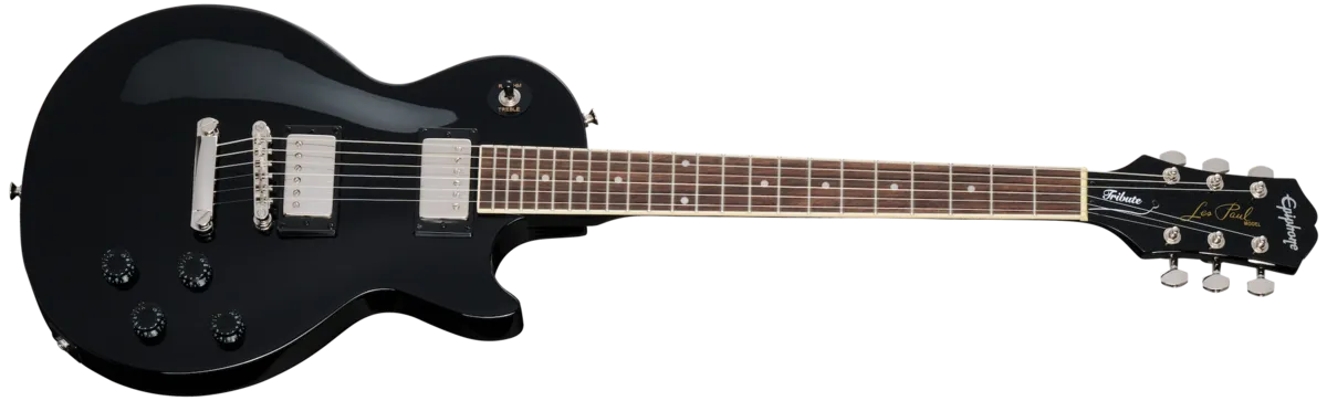 Epiphone proudly presents the new Les Paul™ Tribute, an incredible, affordable introduction to the world's greatest electric guitar! The Les Paul Tribute has all the classic Les Paul features that have made this iconic instrument a worldwide favorite for decades. It boasts a carved mahogany top, powerful Epiphone 650R TM and 700T™ ceramic humbuckers™ with nickel covers, and a mahogany neck with a laurel fretboard and an easy-to-play tapered neck joint. It's a no-nonsense axe with all the playability and tone you'd expect from a Les Paul guitar. Available in multiple color options. Also offered in left-handed versions. An optional gig bag is also available.