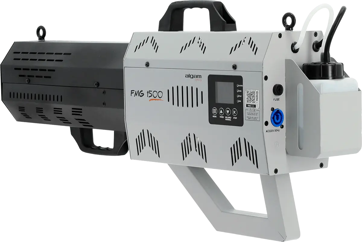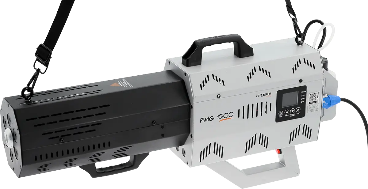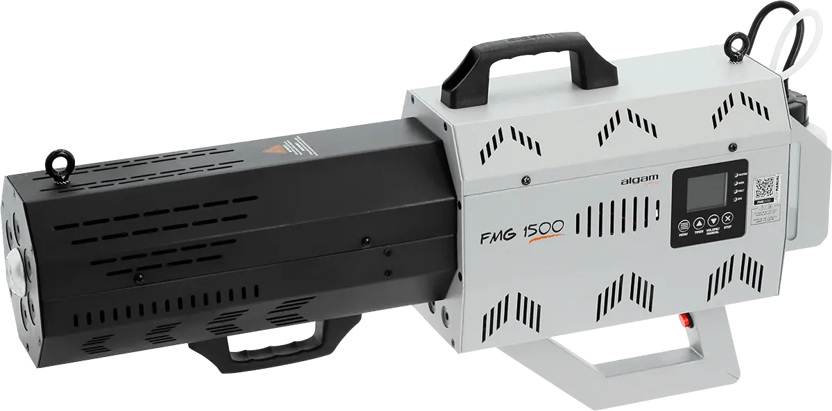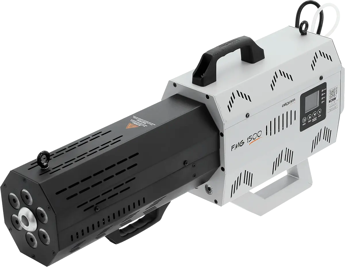 Add a burst of energy to your events with this 1500W smoke cannon!Perfect for parties, DJ sets, or festive events, it shoots powerful smoke jets up to 10 meters, with an output of 700 m³/min. The effect is amplified by 6 RGBA LEDs positioned around the nozzle, adding intense, synchronized colors to each blast. A guaranteed atmosphere from the very first seconds of your show!Easy to use and ready in under 5 minutes.Weddings, birthdays, DJ nights or live shows: the wow effect is guaranteed! Use the built-in screen to set the colors and maximum smoke projection time. Ready to perform in less than 5 minutes, 3 LEDs located under the cannon show its status: yellow when charging or red when ready to fire. You’re in control of the perfect moment!Designed for entertainment professionalsThis smoke cannon features a 0.5 L tank allowing multiple activations without refilling. Its sturdy build and included strap ensure solid placement on stage. For mobile setups or touring, an optional flight case is available to keep it safe during transport. Whether it’s a wedding, nightclub or live show, this smoke cannon quickly becomes an essential tool.