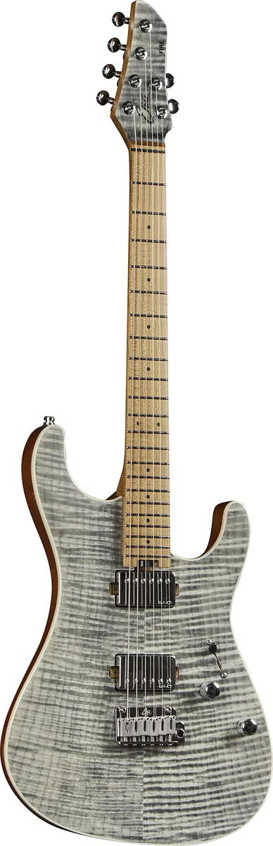 Musa guitars are crafted to the highest standards, to inspire guitarists and enable them to express their very best with comfort and performance. The body is made of solid alder, topped by a flamed Canadian maple top. The sturdy, comfortable 5-point screwed roasted maple neck is topped by a 22-fret roasted maple fingerboard, with a 628 mm scale, for added playing comfort. The Eko Steel HRC57 tremolo features independently adjustable saddles to fine-tune the action and harmonics of each string. Its locking tuners in 4+2 configuration ensures tuning and note stability. Finally, the glossy grey color is present on the top body, as well as on the front of the headstock, to elegantly magnify the flamed maple.