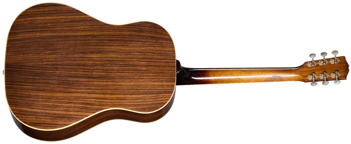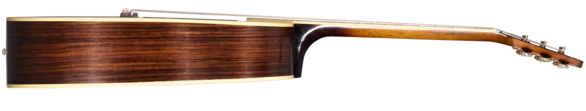 During a time when cultural optimism was low, Gibson dreamed up a new line of "advanced" instruments; included in those models was the Advanced Jumbo. Due to low production numbers from 1936-1939, this model largely flew under the radar even though it was a supreme-sounding and performing instrument. Gibson Custom is pleased to once again offer the Gibson 1936 Advanced Jumbo, outfitted with a thermally aged red spruce top, rosewood back and sides, and premium Waverly tuners. The 1936 Advanced Jumbo brings back all the tone and prestige that made these such sought-after instruments by artists and collectors. It features Heavy Aging by the skilled artisans of the Murphy Lab. The Murphy Lab Heavy Aged finish treatment, paired with heavily aged hardware, simulates decades of heavy play wear, giving it the unique character, vibe, and feel of an original example from the Gibson Golden Era. Expect a heavy weather-checked finish, heavy belt buckle wear, light arm wear, and light neck wear.