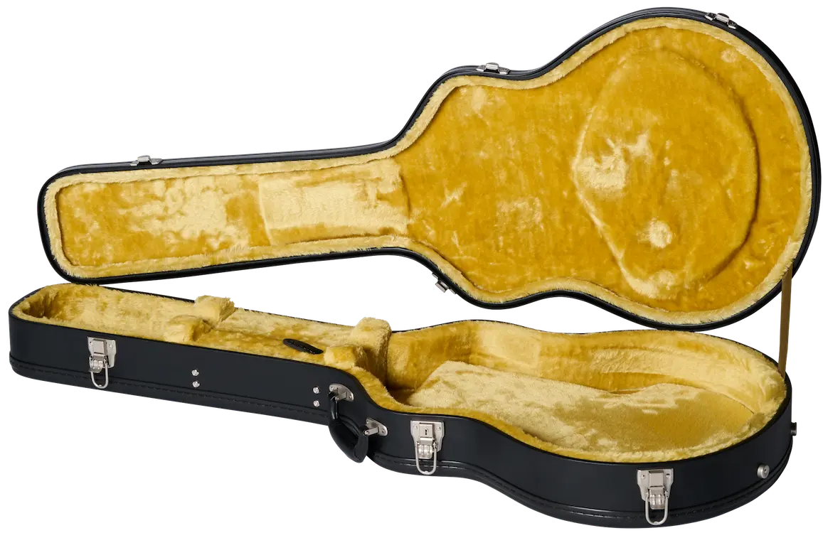 The Gibson ES-335 is one of the greatest guitar designs of all time. It is renowned for its exceptional versatility and has been used by countless players in a wide range of genres. Combining the best elements of solidbody and thinline hollowbody designs, it's a highly resonant guitar that resists feedback much better than a full hollowbody due to its interior solid maple centerblock. Now, Epiphone, in cooperation with Gibson Custom, is proud to introduce the 1962 ES-335 Reissue, a guitar that was very much inspired by Gibson Custom's ES-335 offerings but purposefully based on a model year that Gibson Custom does not currently reissue - 1962, a year when popular features like rounded cutaways, small block inlays, and a fast-playing, slim neck profile were all present on the Gibson ES-335. The Epiphone 1962 ES-335 Reissue has a semi-hollow 5-ply layered maple/poplar body with rounded cutaways and a solid maple centerblock for outstanding sustain and feedback resistance. The genuine one-piece mahogany neck has a thin 1960s Slim Taper™ C profile and is capped with a rosewood fretboard that is outfitted with 22 medium jumbo frets and mother-of-pearl small block inlays. The fretboard features rounded edges to give it a comfortable, played-in feel that invites you to explore it for hours at a time. Even the side dot position markers are the same size as on vintage 1962 ES-335 models and are placed in historically accurate locations. The Gibson-style "open book" headstock features the Epiphone logo and Gibson Crown inlaid in aged mother-of-pearl and is fitted with smooth-turning Epiphone Deluxe tuning machines with Double Ring Keystone-style buttons and a Graph Tech® nut. An ABR-1 Tune-O-Matic™ bridge and Gibson historic reissue aluminum Stop Bar tailpiece anchor the strings at the other end directly into the solid maple centerblock and further contribute to the 1962 ES-335's excellent sustain. For electronics, a pair of USA-made Gibson Custombucker humbucker™ pickups are hand-wired to CTS® potentiometers and Black Beauty paper-in-oil capacitors and deliver authentic ES-335 tonal versatility, making the 1962 ES-335 Reissue a great choice for rock, blues, jazz, country, and more. The Sixties Cherry and Vintage Burst finishes have a vintage gloss that gives them a cool vintage vibe. A vintage-style Black hardshell case with a plush Goldenrod interior and Inspired by Gibson Custom exterior graphics is also included to help keep this beautiful 1962 ES-335 Reissue safe during storage and travel.