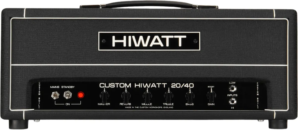 The famous Hiwatt SA20 Custom 20 circuit pushed to the next level with a switchable 40W output section. The same spanky, chimey cleans and grinding overdrive with extended volume and Headroom. Add a footswitchable boost and lush, long-decay spring reverb and you an extremely versatile, unique, and formidable full-range amplifier.