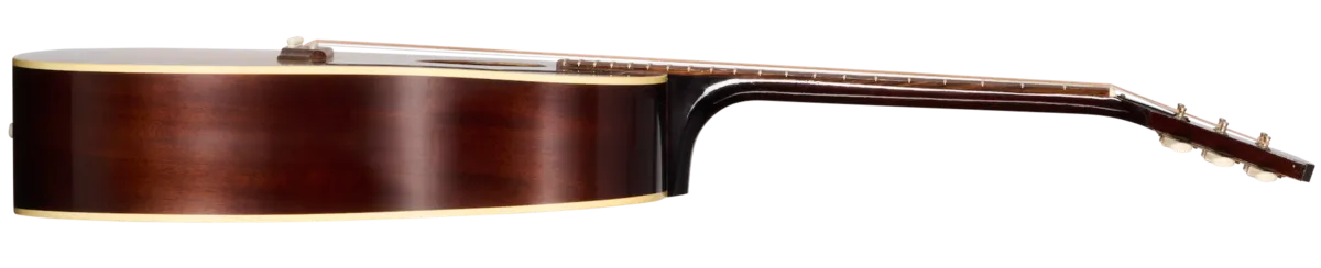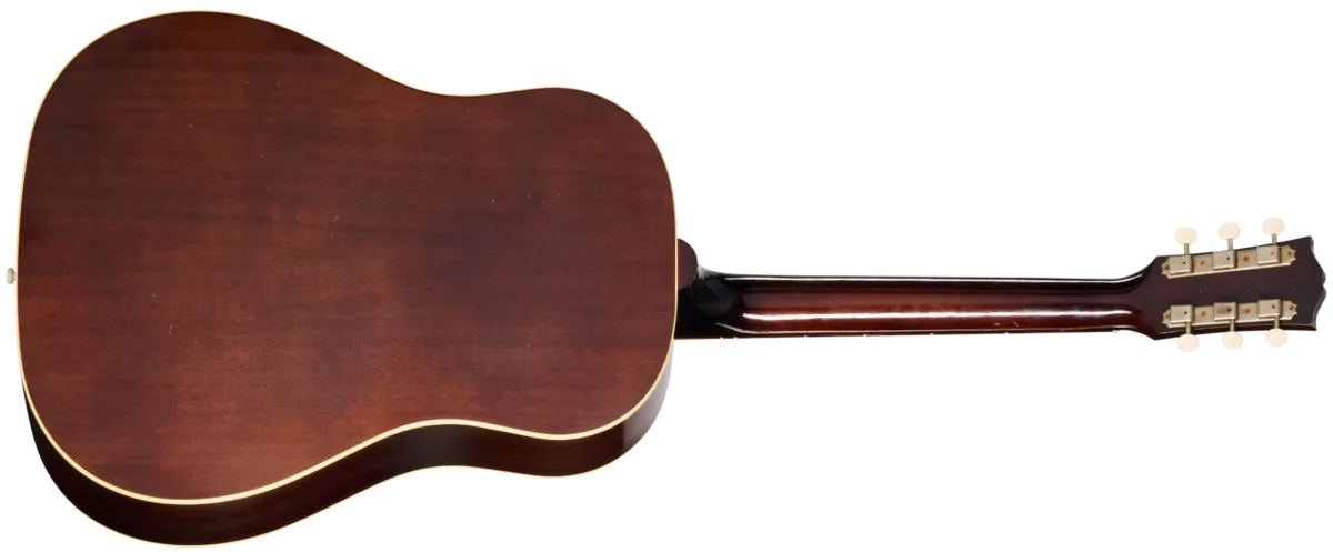 The Gibson J-45™ was first introduced in 1942 and quickly earned its nickname, "The Workhorse," due to its wide acceptance, no-nonsense simplicity, and understated elegance. It's one of the most recorded acoustic guitars in history and Gibson's best-selling acoustic model of all time. 1955 was a significant year in the history of the J-45 model. It was when Gibson lengthened the fretboard and added a 20th fret to the J-45. Around the same time, the teardrop pickguard used on the earlier models was dropped in favor of a larger 50-styled pickguard. Handcrafted with care in Bozeman, Montana, by Gibson Custom's expert acoustic luthiers, the 1955 J-45 Light Aged is a stunning recreation of the 1955 J-45. It features vintage-accurate appointments and features. The round shoulder mahogany body has a thermally aged Sitka spruce top to give it the sweet tone of a long-cherished, well-seasoned vintage guitar. The X-bracing is fitted with hide glue, and the body is adorned with multi-ply top and single-ply back binding. The mahogany neck has a Round profile and is attached to the body with a compound dovetail neck-to-body joint that is also fitted with hide glue. The neck is capped with a rosewood fretboard that is equipped with 20 standard frets and decorated with simple mother-of-pearl dot inlays. Vintage-style Grover® strap tuners with cream buttons are installed on the headstock, and the nut, saddle, and bridge pins are all bone. The 1955 J-45 Light Aged features Light Aging by the skilled artisans of the Murphy Lab. The Murphy Lab Light Aged finish treatment, paired with lightly aged hardware, simulates decades of light play wear, giving it the unique character, vibe, and feel of an original example from the Gibson Golden Era. It comes packaged in a 50s-style Lifton™ hardshell case to complete the authentic vintage playing and ownership experience that only Gibson Custom and the Murphy Lab can deliver.