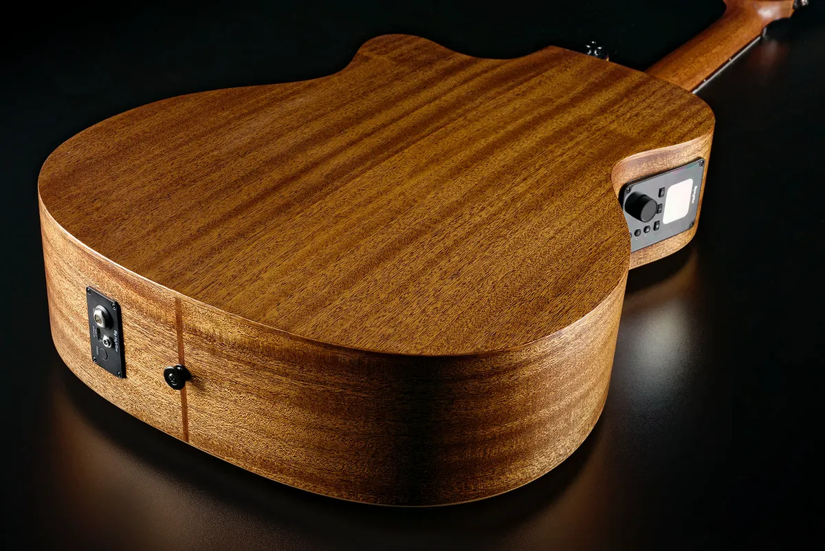 sides add depth and richness. The auditorium body ensures comfort, and the cutaway design provides access to the upper frets for classical and modern styles alike. With the eco-friendly Brown