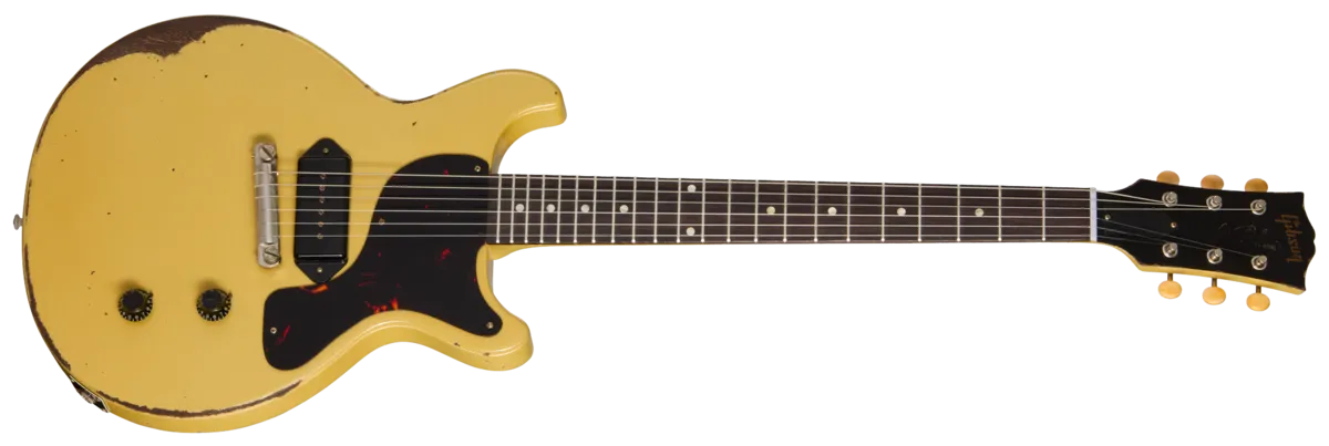 In guitar lingo, being "ruined" is when you play something so good there's no going back to what you once had. No Gibson guitar has evoked this expression more than the Les Paul T™ Junior. In the 1950s, it was sold as a student/budget model, as simple as a set-neck solidbody electric guitar could be. But after a while, the humble Les Paul Junior caught the ear of professional guitarists who appreciated its sonic purity and minimalist components. The luthiers and craftspeople of the Gibson Custom Shop have proudly kept the recipe the same for this Historic Reissue. From the solid mahogany and hide glue construction to the vintage-style wiring, the classic Les Paul Junior is back...and ready to "ruin" you. The 1957 Les Paul Junior Single Cut Reissue features a single cutaway, solid mahogany body, along with a solid mahogany neck with a long tenon that is fitted to the body with hide glue. The neck also has a 50s Rounded Medium C profile and is topped with an Indian rosewood fretboard with 22 authentic medium jumbo frets and simple pearloid dot inlays. Kluson® three-on-a-plate tuners with white buttons ensure reliable tuning stability while a traditional wraparound bridge solidly anchors the strings and contributes to the Junior's exceptional sustain. For the electronics, a single Dogear P-90 from Gibson Custom is paired with audio-taper CTS® potentiometers and a paper-in-oil tone capacitor, delivering the wide variety of authentic Les Paul Junior tones that have thrilled players and audiences for decades. The 1957 Les Paul Junior Single Cut Reissue features Heavy Aging by the skilled artisans of the Murphy Lab. The Murphy Lab Heavy Aged finish treatment, paired with heavily aged hardware, simulates decades of heavy play wear, giving it the unique character, vibe, and feel of an original example from the Gibson Golden Era. An aged Lifton™ five-latch brown/pink hardshell case is also included.