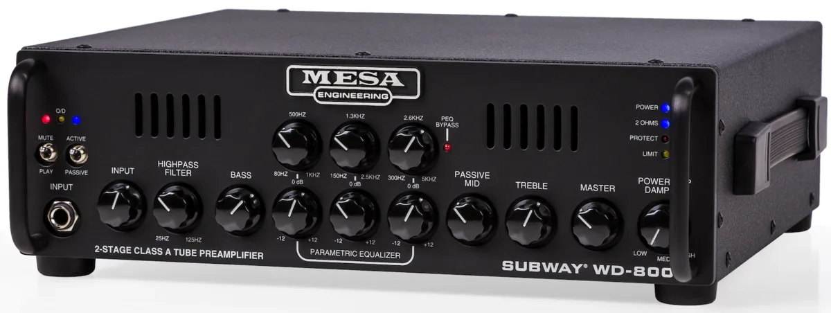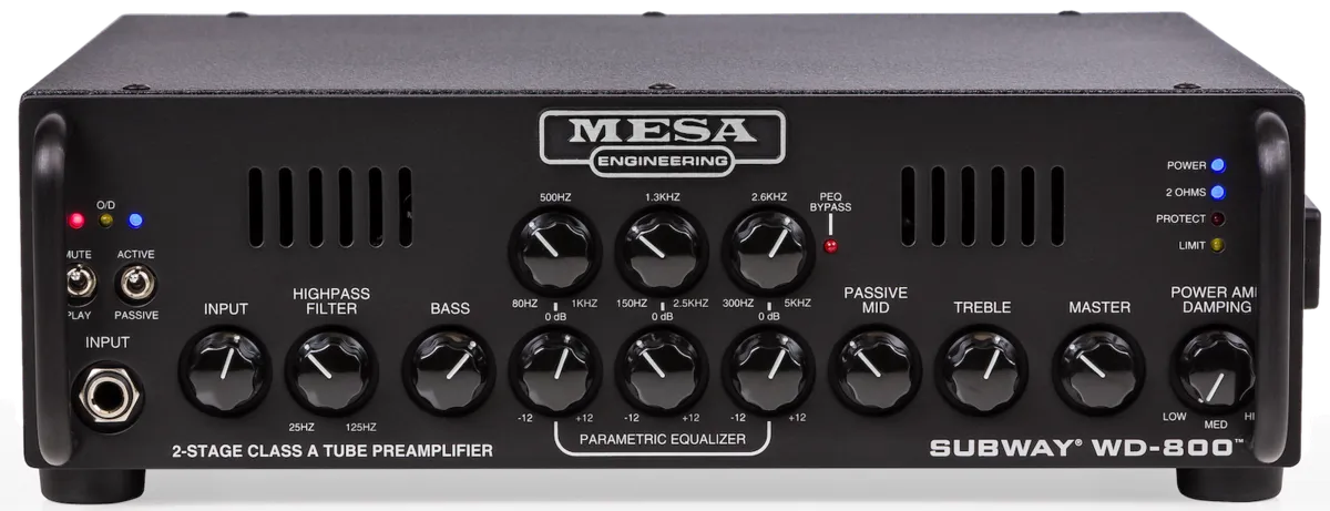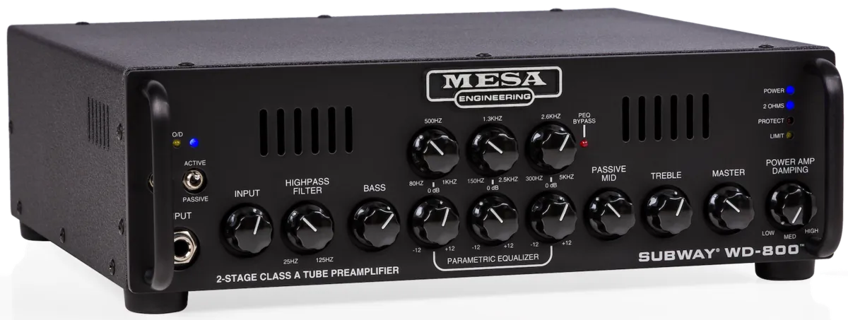 As in the original, the inspiring round, fat WalkAbout Tone is joined by comprehensive rotary shelving Tone controls and a semi-parametric EQ, giving you total shaping authority in the preamp. The new WD800 also features the Subway D800 Plus's highly effective HIGH PASS FILTER and a new POWER AMP DAMPING control, which allow tuning of the sub-low frequencies and power response options respectively. The POWER DAMPING choices enable you to tailor the tracking and feel of the power amp. The LOW setting produces a looser, more relaxed and blooming character reminiscent of Tube power. HIGH tightens the low end adding punch and accuracy in tracking, while MEDIUM provides a blend of these opposite ends of the power response spectrum.