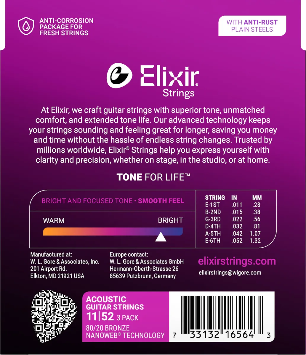 Elixir® Acoustic 80/20 Bronze Strings with NANOWEB Coating deliver a bright, lively tone together with extended tone life that players have come to expect from Elixir Strings.