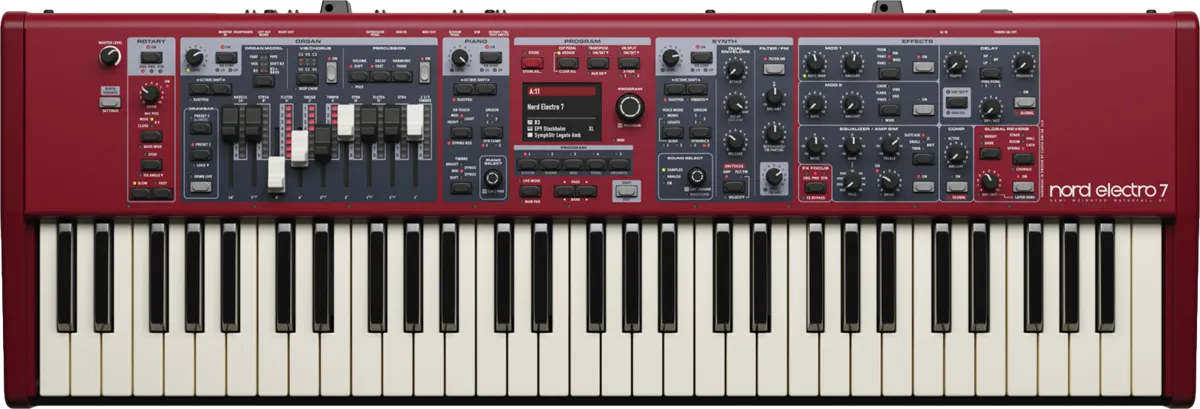 The Nord Electro 7 elevates the Electro series with a powerful new Synth Section, dedicated per-section effects, and a refined panel design with a high-resolution color display.