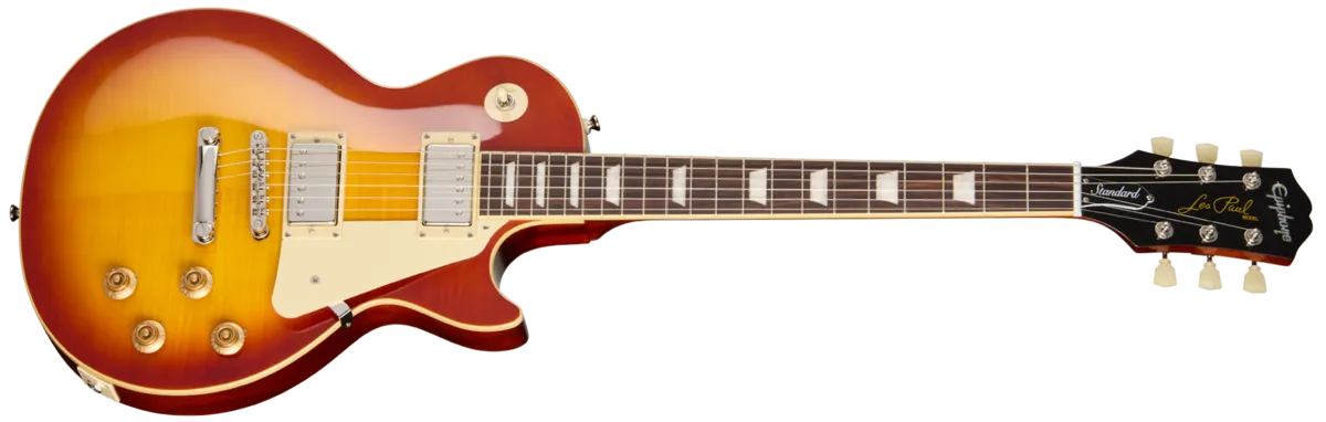 Few guitars can claim the legendary status of the 50s-era Gibson Les Paul™ Standards. Known among players and collectors as "Bursts" and acclaimed for their beauty, smooth playability, and exceptional tone, they are among the most cherished vintage guitars on the planet, having been seen in the hands of countless musicians on concert stages worldwide and featured on numerous hit recordings. Now, Epiphone is proud to introduce the updated Les Paul Standard 50s Figured, an Inspired by Gibson tribute to those legendary guitars that lovingly recreates the feel and tone of the 50s-era Les Paul Standards. Epiphone's long friendship with Mr. Les Paul began in 1940 when Les built one of the world's first solidbody electric guitars while working nights at the original Epiphone factory in Manhattan. Les' first solidbody guitar, nicknamed "the Log," would go on to inspire the Les Paul Standard, which many consider the greatest electric guitar ever made.