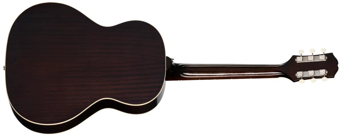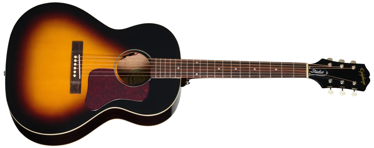 The Epiphone Blues King Studio is part of the all-new Epiphone Studio Acoustic Collection. These guitars have been completely reimagined to offer the most authentic and affordable acoustic guitars inspired by iconic Gibson designs. The Blues King Studio delivers a delightful blend of vintage charm and modern craftsmanship and was designed to deliver a soulful and resonant sound that's perfect for blues and folk enthusiasts. Based on classic Gibson parlor acoustics, the Blues King Studio's smaller parlor-sized body and shorter 24.75" scale length make it an excellent choice for a first guitar for younger players and a solid choice for smaller-statured players. Its bluesy tone is ideal for fingerstyle, blues, folk, Americana, and other traditional music styles. The Blues King Studio has a layered, L-00-style mahogany body with single-ply cream binding on the top and back and a solid spruce top for a responsive, balanced tone with excellent dynamic range that sounds even better as it ages. The mahogany neck is attached to the body with a glued-in tapered dovetail neck-to-body joint and features a comfortable Rounded C profile. The neck is capped with a rosewood fretboard equipped with 19 standard frets and adorned with simple pearloid dot inlays. The other ends of the strings are routed over a compensated plastic saddle and are anchored to the rectangular rosewood bridge with ivory-colored bridge pins. We also included other details that give the Blues King Studio even more vintage-style flair, including an L-00-shaped dark tortoise shell-colored pickguard, three-on-a-plate tuners with ivory-colored plastic buttons, and a 60s Kalamazoo-style headstock with the Epiphone logo proudly displayed in gold silkscreen. The Blues King Studio comes with Fishman electronics, including an S-Core under-saddle pickup and Fishman Presys VT preamp with soundhole-mounted volume and tone controls that deliver quick and easy access for the player while remaining all but invisible to the audience. The Epiphone Blues King Studio has a gloss finish and is offered in two vintage-approved colors-Ebony and Dark Burst. Both right and left-handed versions are available. A standard gig bag is also included.A battery is not included. To power your pickup, you will need a 9-volt battery.
