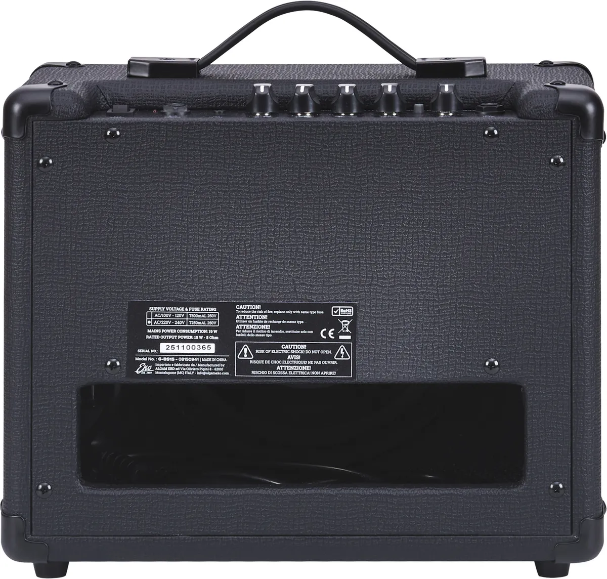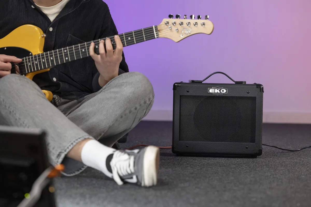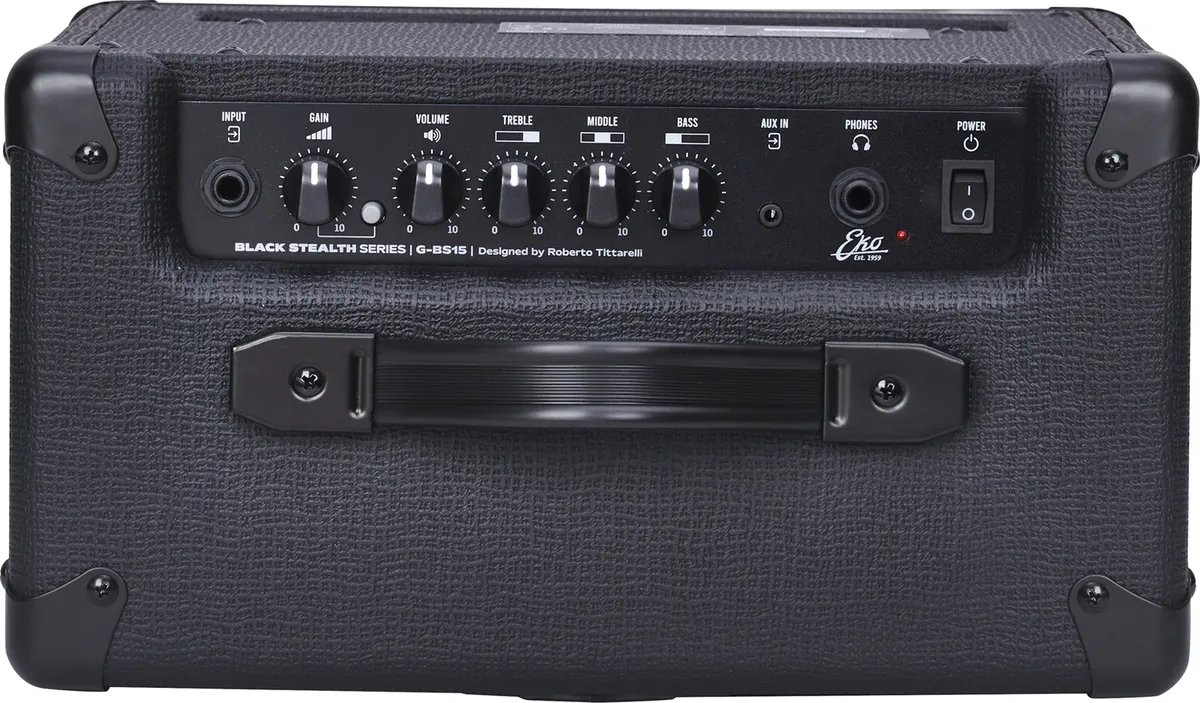 A super compact format!The G-BS15 was developed by Eko, in partnership with technician Roberto Tittarelli, to offer guitarists a small, lightweight, and compact transistor combo for practicing electric guitar. This combo delivers 15W through a 8inch speaker and allows you to explore a variety of sounds and musical styles thanks to its two channels (clean and drive) selectable via a switch, for clear or more saturated sounds.Simple but effective!The G-BS15 features a simple but effective interface: a gain control, complemented by a classic three-band EQ, and a volume control to manage the two channels. In addition to the guitar input, this small amplifier includes an auxiliary input for playing along with your favorite songs, as well as a headphone output for discreet practice when needed.Compact and lightweight at 4.8 kg, the G-BS15 is an ideal guitar combo for beginner guitarists looking for an amplifier for home use or small rehearsals, at a very reasonable price.