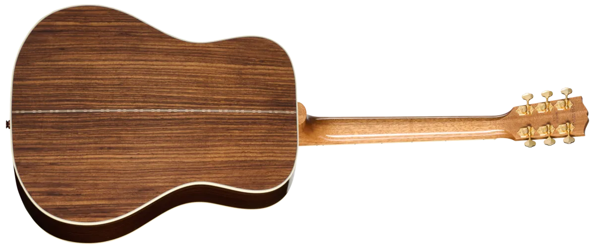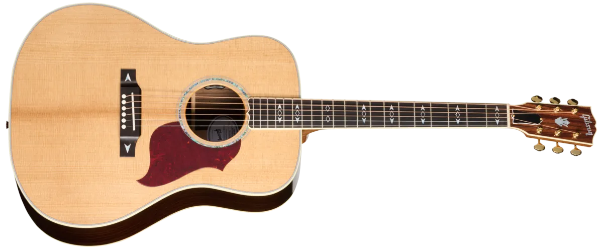 The Gibson Songwriter was introduced in the late 1990s and features a unique Gibson square shoulder modern dreadnought body design. The Songwriter Recording Artist captures the historic tonal advantages that come from Gibson's famed 1930s scalloped Advanced X-braced top, 25.5" long scale length, and tonewoods that are similar to the 1936 Advanced Jumbo's, for a unique sound that is still 100% Gibson. Created for the connoisseur of acoustic recording and live performance, the Songwriter Recording Artist is a superior, powerful, and dynamic guitar for the most demanding professional players.The Songwriter Recording Artist is handcrafted in Bozeman, Montana, using a thermally aged Sitka spruce top that is paired with a rosewood back and sides. The 25.5" scale mahogany neck has a comfortable Round profile, and is fitted with a smooth-playing, bound ebony fretboard that is equipped with 20 standard frets and adorned with mother-of-pearl diamond eye inlays. The neck has a compound dovetail joint and is attached to the body using hot hide glue for a stable connection and maximum tonal transfer. The bound headstock has a rosewood veneer that features the Gibson logo and Crown inlaid in mother-of-pearl. The nut is bone, and high-quality gold Grover® open-back tuners are fitted. The bridge is also ebony and is equipped with a bone saddle and TUSQ® bridge pins, and decorated with mother-of-pearl arrow inlays. The thermally-aged Sitka spruce top is protected by a custom line tortoise pickguard and features a wide abalone rosette.As the name implies, the Songwriter Recording Artist was designed to be a great recording and live performance guitar, and comes with high-quality electronics for easy plug-and-play performance in the studio or on stage. The built-in L.R. Baggs™ Hifi system features dual bridge plate sensors and a preamp inside the guitar that deliver outstanding dynamics, string balance, and note definition, while also being feedback resistant. The preamp is voiced to work together with the sensors to deliver natural-sounding acoustic tone when plugged in. The system's soundhole-mounted volume and tone controls are easily accessed by the player while remaining all but invisible to the audience. The Songwriter Recording Artist ships in a Gibson hardshell case for protection when you're on the road, and is a great choice for modern acoustic guitarists who perform live and in the studio. Try one for yourself, and prepare to be amazed.