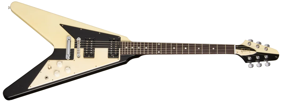 Body Shape Flying V Material Mahogany Binding N/ANeck Neck 3-piece Mahogany Profile Artist Profile Nut width 1.575" / 40.005mm Fingerboard One-Piece Indian Rosewood Scale length 24.75" / 628.65mm Number of frets 22 Nut Corian Inlay Cellulose Dot Hardware Bridge ABR-1 (Wire) Tailpiece Historic Reissue Stop Bar Tuners Schaller M6 Control Knobs Knurled White Top Hat with Gold Lettering and Numbers and Dial Pointer Plating Chrome; Murphy Lab Light AgedElectronics Neck pickup T-Top Humbucker, Alnico 5, Unpotted Bridge pickup T-Top Humbucker, Alnico 5, Unpotted Controls 2 Volume, Master Tone; Hand-wired with 500k CTS Potentiometers and Ceramic CapacitorCase & SKU Case ustom Replica Flight Case with M.S.G. Graphics SKU 71FVMSBWMLCH1