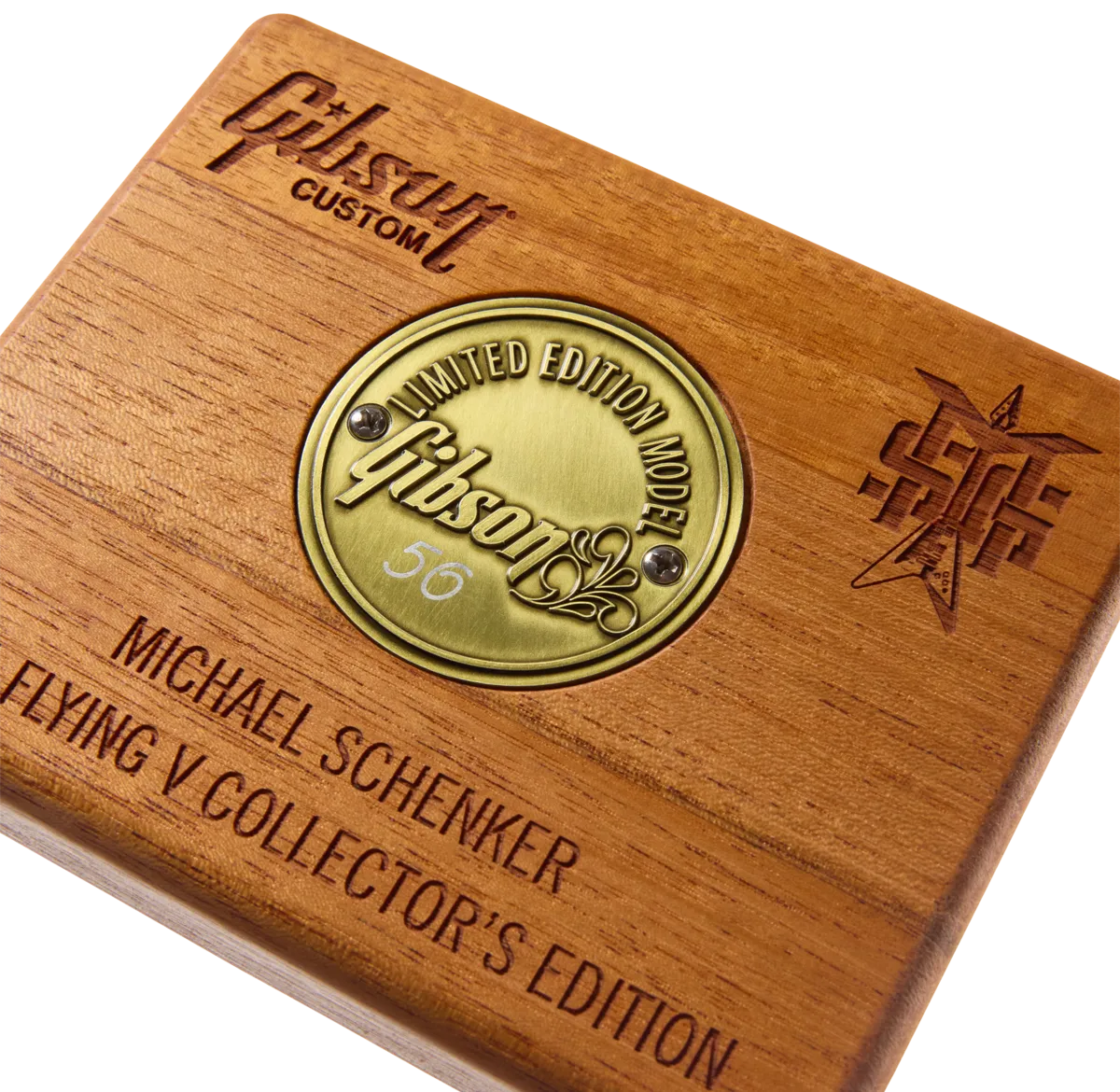 Iconic UFO, Scorpions, and Michael Schenker Group guitarist Michael Schenker made his 1971 Flying Vm famous in the 70s and 80s, inspiring many hard rock and heavy metal players in the process. Michael's Flying V was a 1971 Medallion Flying V model, with Medallion #56. It was originally Cherry Red, then painted Black, and later the iconic Black and White. Michael used it to record the first three UFO albums, and in the process, he and his Flying V had an enormous influence on hard rock and metal guitarists of the 80s. The guitar is now in the collection of Kirk Hammett. Kirk and many others believe it may be the most influential Flying V ever made.Now, Gibson Custom is proud to introduce the Michael Schenker 1971 Flying V Collector's Edition. Recreated from 3D scans of the original guitar, this Gibson Custom recreation features the iconic Black and White paint scheme and is aged by the Murphy Lab to match the original. The Michael Schenker 1971 Flying V Collector's Edition features a mahogany body with a white pickguard that has its upper half painted black, and a three-piece mahogany neck with a volute and a thin artist profile that is 3D scanned from the original guitar. The neck is topped with a one-piece rosewood fretboard with 22 medium jumbo frets and cellulose dot inlays. The Flying V headstock continues the black and white theme, and has a half white, half black truss rod cover installed, along with Schaller M6 tuning machines and a Corian® nut.The Michael Schenker 1971 Flying V Collector's Edition is powered by a pair of uncovered T-Top humbuckers ™ with Alnico 5 magnets, each hand-wired to individual volume controls, along with a master tone control. All three controls use 500k CTS® potentiometers. The three-way pickup selector switch and 1/4" output jack are from Switchcraft®.The Michael Schenker 1971 Flying V Collector's Edition is limited to only 50 guitars, each hand-signed by Michael Schenker on the back of the headstock and packed in a custom replica flight case with Michael Schenker Group graphics. A #56 Medallion, displayed on a commemorative mahogany block, and a Certificate of Authenticity in a matching black and white folio, are also included. Don't miss your opportunity to own a virtual clone of what many players consider to be the most influential Flying V guitar ever made, which was made famous by one of the most influential hard rock and metal guitarists of all time-Michael Schenker.
