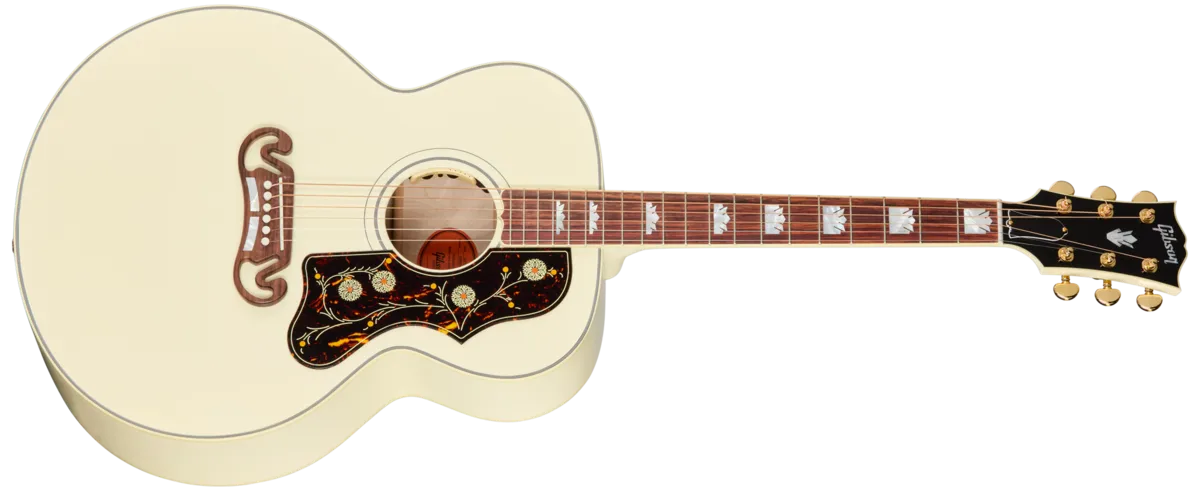 The King of the Flat-TopsThe legacy of the "King of the Flat-Tops" from Gibson lives on in the SJ-200 M Standard. From its inaugural appearance in 1937, the Gibson SJ-200 set an unmatched standard in looks and sound.Embraced by everyone from early singing cowboy movie and TV stars and country superstars to folk and rock legends, the SJ-200 has been heard on countless recordings and seen on stages worldwide for decades. The SJ-200 Standard continues the legacy of the world's most famous acoustic guitar and is certainly one of the most popular. It makes a sonic and visual statement like no other guitar ever made,The SJ-200 Standard features back and sides crafted from AAA maple, paired with a solid Sitka spruce top, which gives it a bold sound with excellent projection. It is finished in gloss nitrocellulose lacquer and available in a variety of colors. The two-piece maple neck features a walnut stringer for style and strength. The neck has a comfortable Round profile and features a bound rosewood fretboard that is equipped with 20 standard frets and adorned with mother-of-pearl graduated crown inlays-one of the visual hallmarks of this iconic acoustic guitar.The bound headstock is ornamented with the Gibson logo and crown, both inlaid in mother of pearl. High-quality gold Grover® Rotomatic tuners work in harmony with a TUSQ® nut to ensure smooth, solid tuning. The body features the iconic SJ-200 pickguard and a two-bar Moustache ™ bridge, another readily identifiable feature that distinguishes the SJ-200, made of rosewood. It is equipped with a TUSQ saddle and bridge pins.The SJ-200 Standard comes craftory-equipped with an internal L.R. Baggs™™ Anthem mic/pickup system with soundhole-mounted controls that are easy to access for the performer while remaining all but invisible to the audience. A Gibson Modern hardshell case is also included, so the SJ-200 Standard is ready to join you on stage, in the studio, or wherever the road takes you.