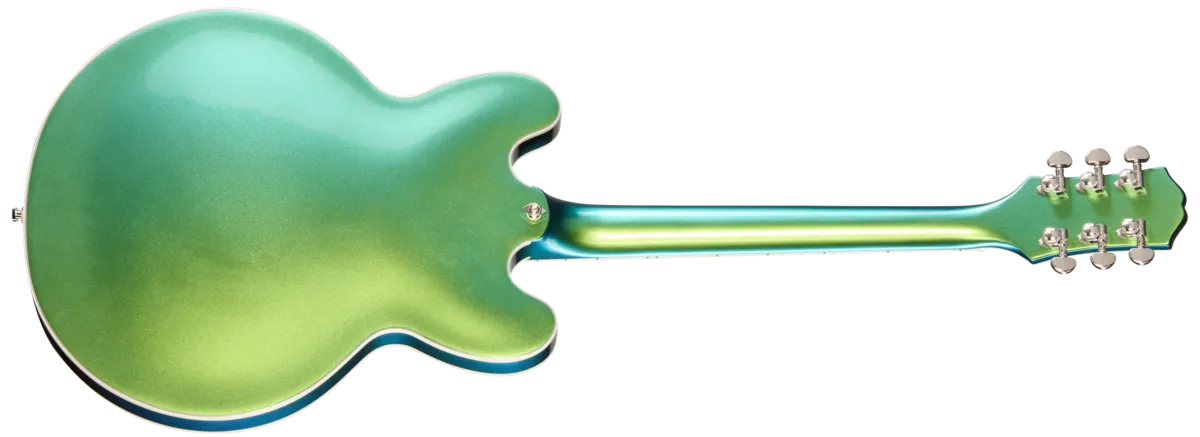 The new Futura Series guitars from Epiphone are designed for today's guitarists who want an instrument that delivers professional performance and forward-thinking features. These Inspired by Gibson models deliver tone and style that's perfect for gigging, recording, or content creation in the modern era. With bold, color-shifting finishes, all-new pickups, and versatile electronic features like coil splitting and phase switching, they have the look and sound that today's players need to stand out from the crowd and make their own statement, both sonically and visually. Other high-performance features, including stainless steel frets, compound-radius fretboards, and ultra-comfortable neck profiles, make the Futura Series guitars truly innovative and a must-have addition for any guitar collection.The Gibson ES-355 M has been a favorite among players for decades, and Epiphone is proud to introduce the Futura ES-355—a contemporary interpretation of the legendary semi-hollow design first introduced in 1958. This model features a solid maple centerblock with a weight-relief window, enhancing sustain and reducing feedback while keeping the guitar lightweight and comfortable. A LockTone M Tune-O-Matic ™ bridge and LockTone Stop Bar tailpiece provide rock-solid intonation and sustain, while Posi-Lok™ strap buttons keep your strap secure without additional hardware. The mahogany neck sports a fast-playing Modern C profile and a bound ebony fingerboard with 22 stainless steel medium jumbo frets and elegant Super 400-style pearloid split block inlays. A 10"-14" compound radius ensures smooth chording and effortless bends. The 5-ply bound Kalamazoo headstock is fitted with locking Grover® Rotomatic® tuners, a Graph Tech® nut, and mother-of-pearl Epiphone and Custom split diamond inlays.The Futura ES-355 is powered by a pair of Epiphone's new ProBucker™ Ignite humbuckers T™, delivering dynamic, articulate tone with plenty of clarity. Push/pull volume and tone controls unlock coil-splitting and phase options for maximum versatility. Available in three stunning Chromashift finishes-Firestorm Shift, Dragonfly Shift, and Midnight Ember Shift-this guitar is designed to make an impression on stage or on screen. Whether you're after a modern aesthetic, a wide tonal palette, or a high-quality semi-hollowbody, the Futura ES-355 is ready to inspire. Each one ships with a premium gig bag, so it's prepared to go wherever your music takes you.