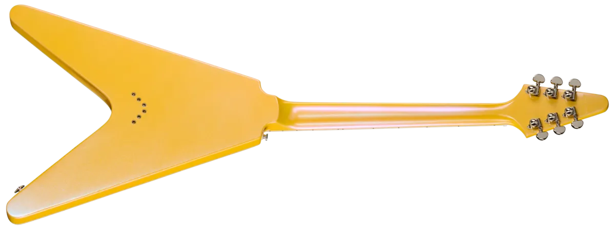 Body Binding Multi-ply top and back Body Material Mahgaony Body finish Gloss Body shape Flying V Weight relief None Body Style SolidbodyNeck Profile Modern C Frets Stainless Steel Joint Glued in, set neck Fingerboard material Ebony Nut Material Graph Tech Inlays Split-block Fingerbaord Radius Compound, 10 in.to 14 in. | Compound, 254 mm to 355.6 mm Binding Single-ply Scale Length 24.75 in. | 628.65 mmHardware Bridge LockTone Tune-O-Matic Finish Nickel Plastics Black Tailpiece Flying V Chevron string-through-body Tuning machines Grover Rotomatic, locking Control knobs Knurled Pickup cover NickelElectronics Neck pickup Probucker Ignite Bridge pickup robucker Ignite Controls 2 volume, 1 tone with push/pul Pickup selector 3-way toggleCase & SKUs Case Gig bag SKU EIFFVCQSSNH, EIFFVCSLSNH