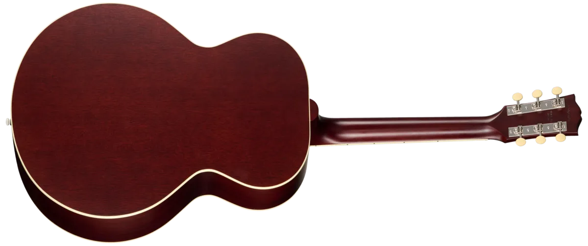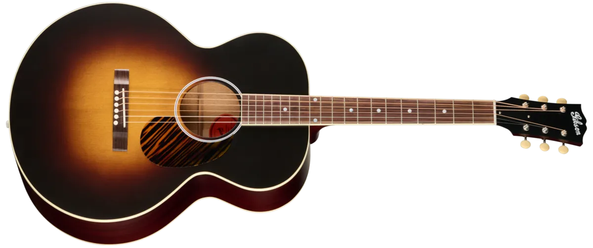 While the Gibson J-185 may not have achieved the same universal name recognition as models like the J-45 M 1, SJ-200 TM ', and Hummingbird T™ ', it has long held a special place among knowledgeable players, who consider it one of the best-sounding acoustic guitars Gibson has ever made. Originally released in 1951, the J-185's body outline drew inspiration from the celebrated 1920s L-5 models, sharing much of their silhouette and proportions. Slightly more compact than an SJ-200 and built with the familiar 24.75" scale length also found on the J-45 and Hummingbird, the J-185 carved out a tonal identity that has made it a favorite for decades.Gibson now introduces a fresh interpretation of this beloved platform: the J-185 Century 12-Fret. It carries forward many of the hallmark appointments that define the classic J-185, but the shift to a 12-fret neck-to-body joint sets it apart from the standard 14-fret design. This configuration shortens the neck and moves the bridge plate farther from the waist and closer to the body's widest point, enhancing top movement and improving playing comfort. The result is a warm, lively, and responsive voice that especially suits fingerstyle players and anyone with a lighter, nuanced touch. Because any J-185 variant is relatively uncommon, let alone 12-fret versions, this new model gives a much wider audience the chance to experience the tonal character that only a 12-fret jumbo can offer. As part of the Century Collection, created to mark 100 Years of Gibson Flat-Tops, the J-185 Century 12-Fret pairs a mahogany body with a Sitka spruce top and is outlined with single-ply cream binding on the top and back.Its mahogany neck features a fast, comfortable Slim Taper ™ 12-Fret profile and is joined to the body at the 12th fret using a compound dovetail neck joint secured with hot hide glue, consistent with Gibson acoustic build tradition. The bound rosewood fingerboard hosts 19 frets and understated mother-of-pearl dot inlays.The headstock showcases open-back Golden Age strap tuners with cream buttons, along with an early-1900s Gibson script logo decal that reinforces the vintage aesthetic. Complementing these details is a sloped rectangle closed-slot rosewood bridge reminiscent of early J-45 instruments. Bone is used for both the nut and saddle, while the bridge pins are TUSQ®. The J-185 Century 12-Fret is fitted with a Gibson oval teardrop pickguard and finished with a hand-applied satin nitrocellulose lacquer in Vintage Amber, Vintage Sunburst, or Ebony. It ships in a premium Century Collection tweed hardshell case and is offered in both right-handed and left-handed configurations.Pick up a J-185 Century 12-Fret and discover the expressive, full-bodied sound that only a 12-fret Gibson jumbo can deliver.