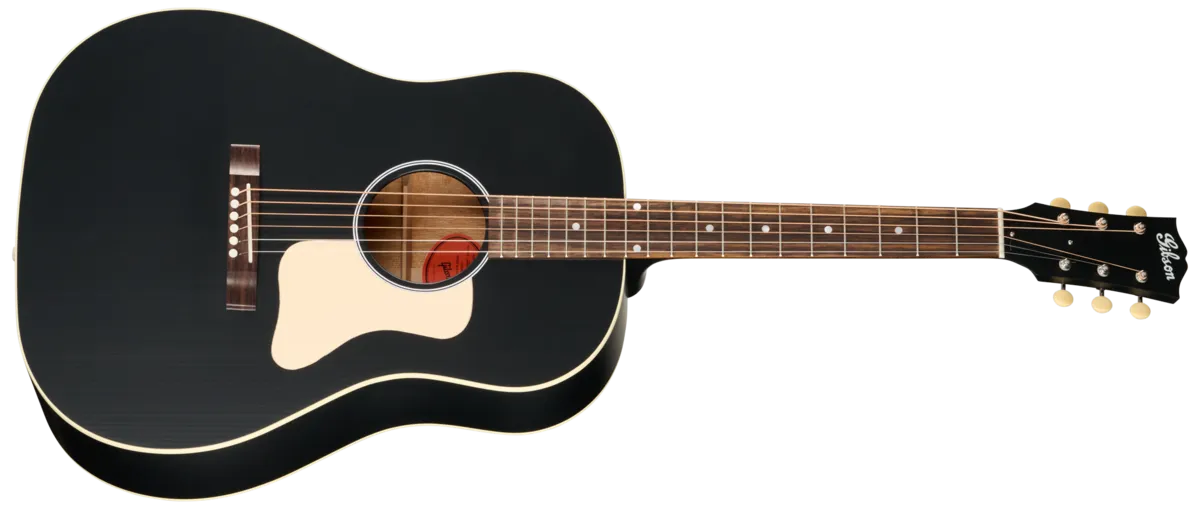Since the 1930s, Gibson's full-size, round-shoulder acoustics have shaped the sound of American music, becoming the most frequently recorded acoustic guitars thanks to their rich warmth, expressive character, and remarkable balance across every note. Among these celebrated instruments, the J-45 M has earned iconic status. First released in 1942, the model quickly became known as the "Workhorse" for its straightforward design, understated good looks, and its long history on stages and in studios around the globe. It remains Gibson's best-selling acoustic of all time.Gibson now proudly unveils a fresh take on this legendary guitar: the J-45 Century 12-Fret. While it embodies the familiar features that players associate with the J-45, this version shifts to a 12-fret neck-to-body joint in place of the standard 14-fret configuration. This change shortens the overall neck length and moves the bridge plate deeper into the body, positioning it closer to the widest part of the top. That placement allows the soundboard to move more efficiently, creating a comfortably played instrument with a warm, punchy, resonant voice—one that responds especially well to fingerstyle technique and lighter picking dynamics.Although Gibson has built 12-fret J-45 variations before, they've traditionally appeared only as artist collaborations or in limited Gibson Custom runs, making them sought after and relatively uncommon. With the introduction of the J-45 Century 12-Fret, this distinctive feel and tone are now available to every player. As part of the new Century Collection, celebrating a century of Gibson flat-top craftsmanship, it pairs a mahogany body with a Sitka spruce top, accented by single-ply cream binding tracing the top and back.The mahogany neck features the fast, familiar SlimTaper'™ 12-Fret profile and is joined to the body at the 12th fret with a compound dovetail joint secured with hot hide glue, consistent with Gibson's traditional acoustic builds. A rosewood fretboard carries 19 frets and simple mother-of-pearl dot inlays.Up top, the headstock is fitted with open-back Golden Age strap tuners with cream buttons and dressed with an early-1900s-style Gibson script logo decal. A sloped rectangle closed-slot rosewood bridge- echoing those found on the earliest J-45 models-adds another vintage-inspired touch. The guitar features a bone nut and saddle, TUSQ® bridge pins, a classic Gibson L-00-style pickguard, and a hand-sprayed satin nitrocellulose lacquer finish.Each J-45 Century 12-Fret ships in a premium Century Collection tweed hardshell case and is offered in both right and left-handed versions. Pick one up today and discover the distinctive, resonant voice of a 12-fret Gibson flat-top.