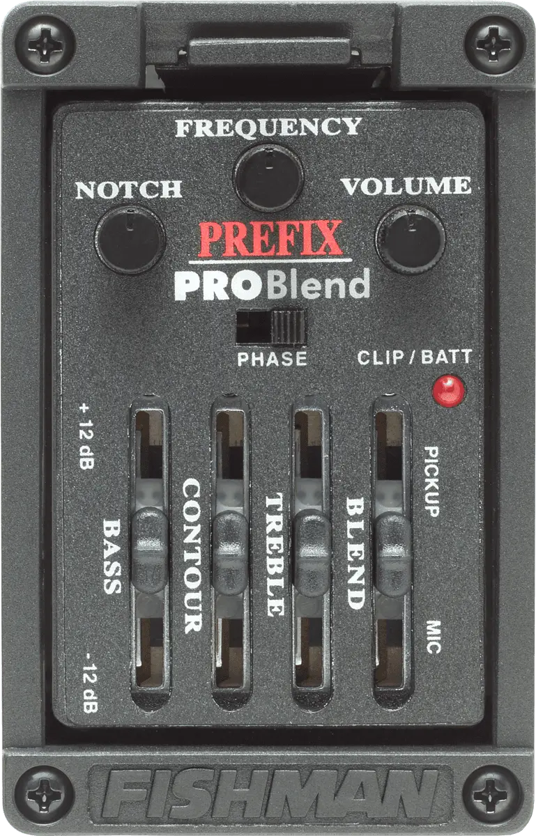 This system packs features similar to the Prefix Plus series, on a smaller bezel that occupies 1/3 less space on the guitar — an excellent fit on slim-bodied acoustic-electrics.