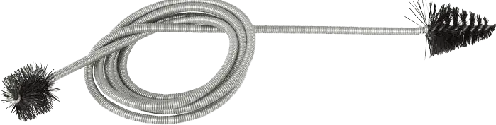 Un flexible gaine plastique 108cm, embouts brosse cylindrique nylon d'un coté, conique de l'autre.