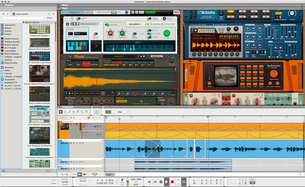 A new look, a new size and new Rack devices for creative sample manipulation, Reason 12 is all about leveling up the creative potential at the heart of your music-making experience. The brand new Mimic Creative Sampler approaches sample manipulation as a musical reimagining of audio samples that can be both inventive and even fun! Bringing together the best audio technologies from Reason Studios’ history of groundbreaking DSP and sample-slicing, Mimic includes automatic transient slice detection which easily chops up a sample into individual notes or drum beats. Time-stretching samples can be done using Reason’s legendary stretch algorithm, along with new granular and tape modes to explore.