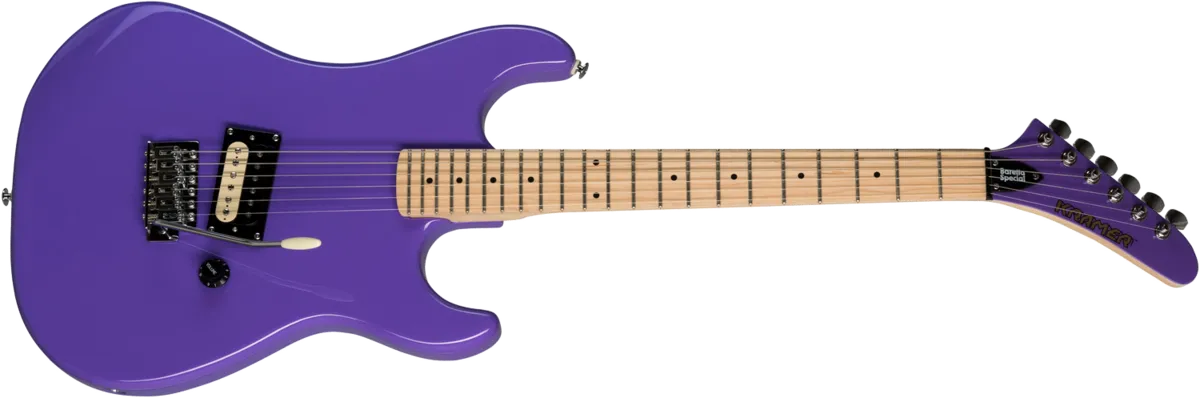 The Baretta Special from the Kramer Original Collection is a great way for new players to discover one of the most influential guitars in rock history at a price anyone can afford! Featuring a powerful Alnico 5 “zebra-coil” humbucker with a single volume control, a tone-rich mahogany body, maple neck, and a Kramer Traditional tremolo.