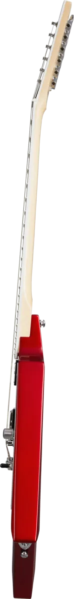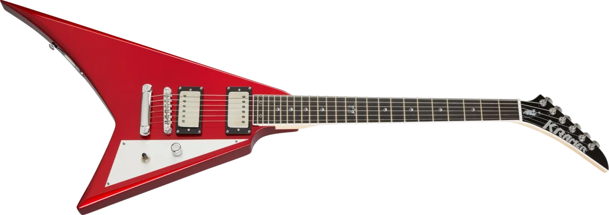 The Kramer Charlie Parra Vanguard is the second Kramer signature model from the Peruvian metal master. Featuring a mahogany body, 3-piece satin-finished maple neck, bound ebony fretboard with 24 jumbo frets, dot inlays with 12th fret Day of the Dead owl, a single chrome knurled master volume control, and 3-way pickup selector switch mounted on a satin aluminum pickguard, EMG™ 57 and 66 pickups with chrome covers, a recessed output jack on the upper horn, and a LockTone™ Tune-O-Matic™ bridge and Stop Bar tailpiece. Charlie Parra's signature is engraved on the truss rod cover, and his signature Vanguard is finished in Candy Apple Red Gloss. Kramer premium gig bag included.