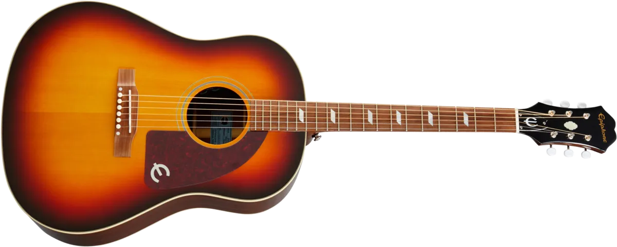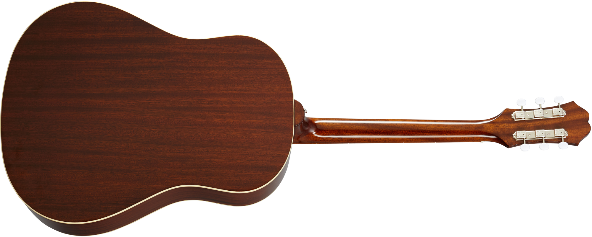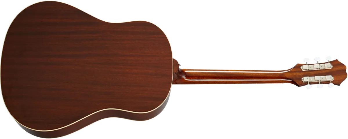 The guitar that inspired two British Invasions joins the Masterbilt family! Based on the historic 60s Texan played by Paul McCartney and Peter Frampton. Featuring a Solid Sitka Spruce top, Solid Mahogany body, bone nut and saddle, and the Fishman Sonitone OEM pickup system. Includes vintage style blue rectangle sound hole label. Available in Antique Natural Aged and Faded Cherry Aged finish. Featuring Gibson Strings.