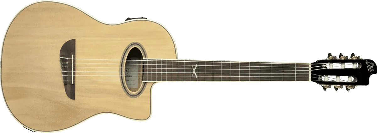 The gloss finish, the design of the headstock and bridge, the smooth and rounded shapes, the X logo at the twelfth fret for an attractive and elegant look with the Italian taste: very high value details for an entry level Nylon Acoustic Guitar. Suitable as a first guitar to take lessons and to exercise, with a very comfortable feeling a little bit smaller and thinner than usual, but also as a next Nylon Guitar for more advanced players also to perform Live. Thanks to the Eko G03 preamp easily to plugin into an acoustic amplifier or direct into the P.A. for live performance. This onboard, in-house designed, EKO Preamp System features volume, bass, middle, treble, phase control as well as an onboard easy to read LED tuner with Mute/Tune function.
