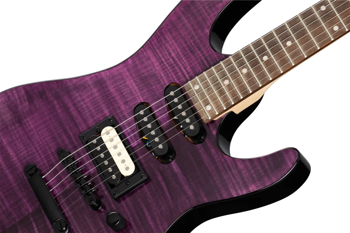 Part of the Modern Collection, the Kramer Striker™ Figured HSS is a gorgeous entry into the high-performance, shred-ready world of Kramer guitars! Along with its stunning AAA flame maple top veneer, it features a satin-finished maple neck with a Kramer K-Speed SlimTaper™ C profile that's fast, easy to play, and incredibly comfortable. Exceptional sonic versatility comes courtesy of a zebra-coil bridge humbucker™ and two single coils, delivering sparkling cleans as easily as harder-rocking tones that can cover a variety of styles. An Epiphone™ LockTone Tune-O-Matic™ bridge and Stop Bar tailpiece ensure excellent intonation and loads of sustain. An optional hardshell case is available.
