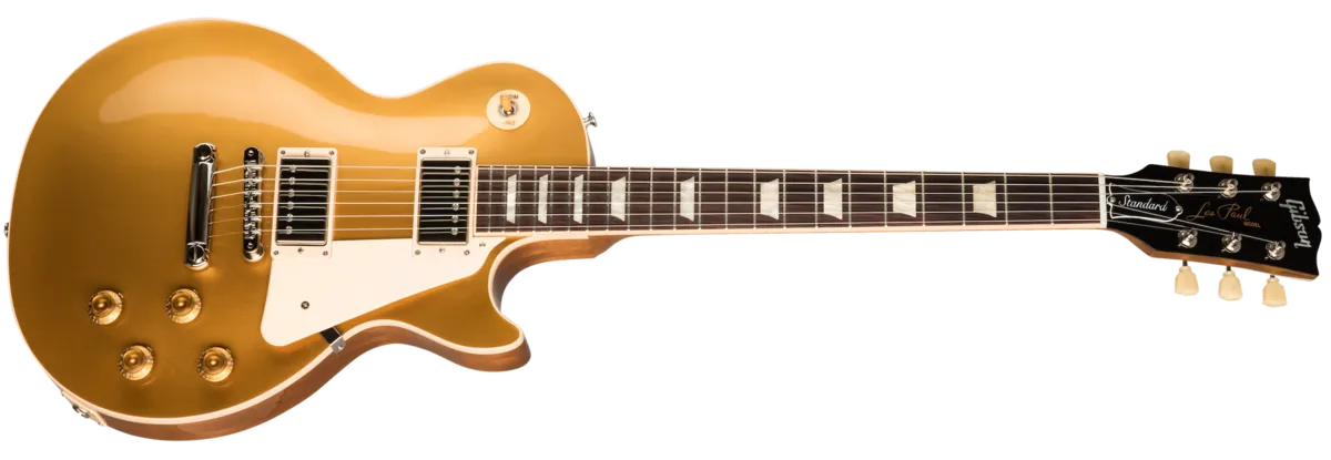 The new Les Paul Standard returns to the classic design that made it relevant, played and loved -- shaping sound across generations and genres of music. It pays tribute to Gibson's Golden Era of innovation and brings authenticity back to life. The Les Paul Standard 50's has a solid mahogany body with a maple top, a rounded 50's-style mahogany neck with a rosewood fingerboard and trapezoid inlays. It's equipped with an ABR-1, the classic-style Tune-O-Matic bridge, aluminum stop bar tailpiece, vintage deluxe tuners with keystone buttons, and aged gold tophat knobs. The calibrated Burstbucker 1 (neck) and Burstbucker 2 (bridge) pickups are loaded with AlNiCo II magnets, audio taper potentiometers and orange drop capacitors.