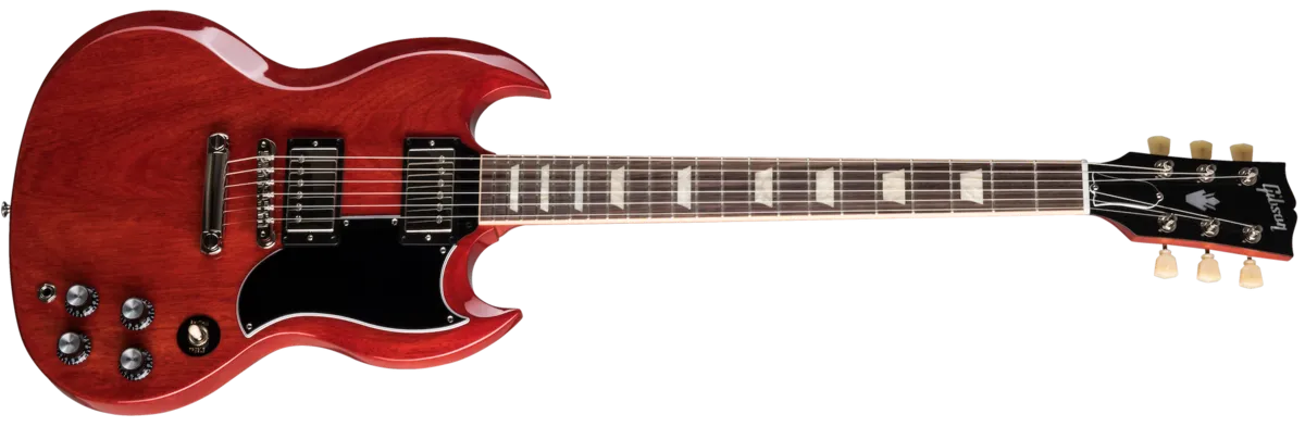 The SG Standard ‘61 returns to the classic design that made it relevant, played, and loved -- shaping sound across generations and genres of music. In 1961, the Les Paul™ model was put on hiatus and an all-new design evolved into what is today known as the SG™ or “solid guitar.” The Gibson SG Standard '61 retains the styling of the original featuring a SlimTaper™ mahogany neck and a bound rosewood fingerboard. The mahogany body features deeply sculpted body scarfing, a 5-ply teardrop pickguard, and a 22nd-fret neck joint. The nickel-plated hardware includes a classic-style Tune-O-Matic™ bridge and Keystone tuners. The pickups are 60s Burstbucker™ humbuckers™ for a classic voice with added power and top end. Controls feature audio taper potentiometers and Orange Drop® capacitors.