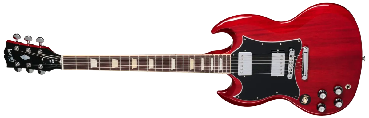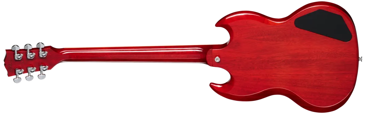 The Gibson SG Standard rocks the classic looks and features associated with the late 60's style SG models sought after by many. A rounded profile mahogany neck, bound rosewood fingerboard, long tenon 19th fret neck joint, and a solid mahogany body provide the backbone for singing sustain. The 490R and 490T Alnico II pickups provide the power to drive. A black, 5-ply, full-face pickguard set this SG Standard apart from others... a truly versatile classic.