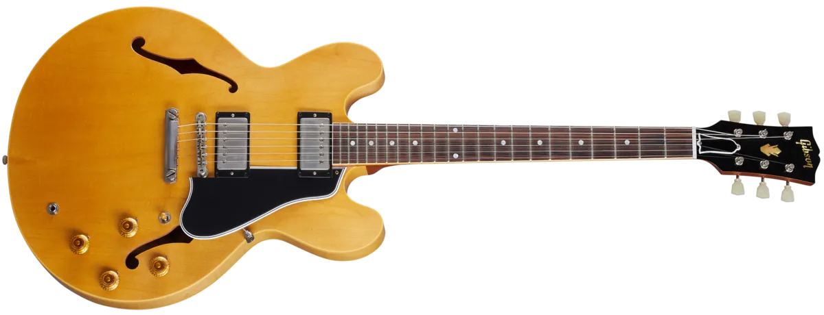 The Historic Reissue ES-335 is back and better than ever, thanks to a year of studying, scanning, and listening to original examples. The expert craftspeople at Gibson Custom Shop have rendered every contour, profile, inlay, and color of the priceless vintage models in magnificent detail. The result is a playing and ownership experience that will keep you coming back for more. The 1959 ES™ Reissue models feature rounded cutaways, Medium C-shape neck profiles scanned from originals, dot inlays, and vintage-replica parts. It also features Light Aging by the skilled artisans of the Murphy Lab. The Murphy Lab Light Aged finish treatment, paired with lightly aged hardware, simulates decades of natural play wear, giving it the unique character, vibe, and feel of an original example from the Gibson Golden Era.