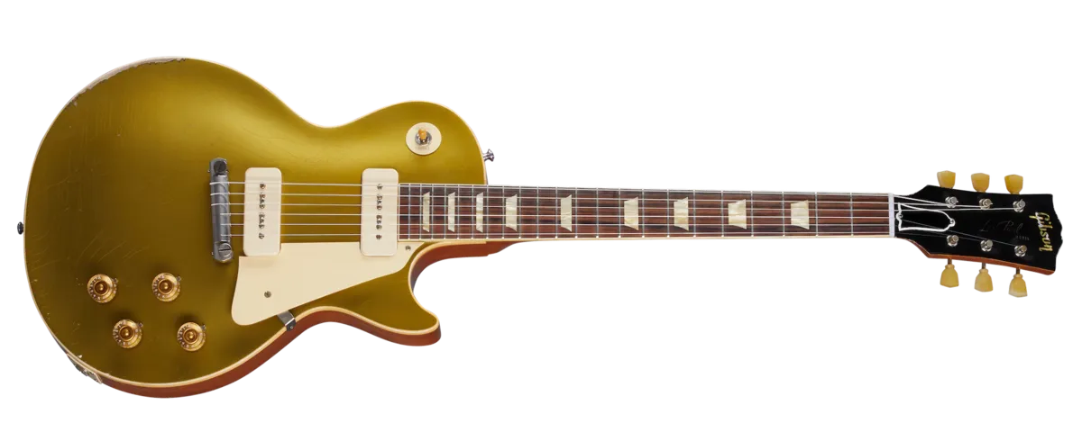 From Freddie King to Jeff Beck, many great pickers have been attracted the unique character of the "wraparound" tailpiece of a 1954 Les Paul™ Goldtop. Some believe its direct link to the body stud screws maximizes sustain while others believe the wraparound bar creates a distinct tonality and vocal quality. Whatever the case, there is certainly something special about this early year in the Les Paul Model's history and Gibson Custom Shop created this '54 Reissue to perfectly recapture the look, feel, and tone of the originals. It features Heavy Aging by the skilled artisans of the Murphy Lab. The Murphy Lab Heavy Aged finish treatment, paired with heavily aged hardware, simulates decades of heavy play wear, giving it the unique character, vibe, and feel of an original example from the Gibson Golden Era.