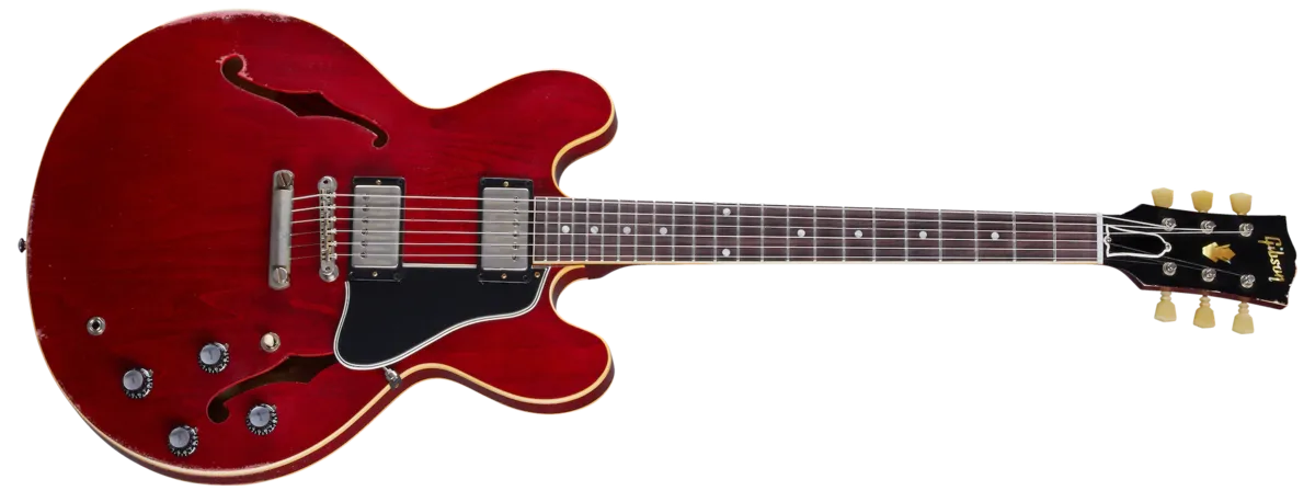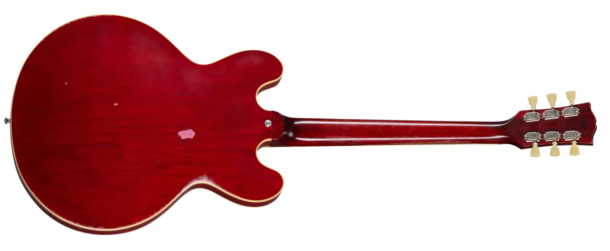 The Historic Reissue ES-335 is back and better than ever thanks to a year of studying, scanning, and listening to original ES™ examples. The expert craftspeople at Gibson Custom Shop have rendered every contour, profile, inlay and color of the priceless vintage models in magnificent detail. The result is a playing and ownership experience that will keep you coming back for more. The 1961 Reissue models utilize rounded cutaways, SlimTaper™ neck profiles scanned from originals, dot inlays, and vintage-replica parts. This model features Heavy Aging by the skilled artisans of the Murphy Lab. The Murphy Lab Heavy Aged finish treatment, paired with heavily aged hardware, simulates decades of heavy play wear, giving it the unique character, vibe, and feel of an original example from the Gibson Golden Era.