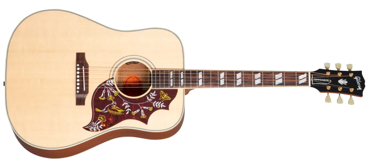 The unmistakable Gibson Hummingbird™ is followed by the masses as one of the most remarkable acoustic guitars ever built. The new Hummingbird Faded blends vintage appointments and today's modern, high-quality build construction. The Hummingbird Faded is outfitted with gold Gotoh® Keystone tuners, a traditional Hummingbird truss rod cover, and a bone nut and saddle. The built-in LR Baggs VTC electronics make this guitar stage and studio-ready, right out of the included hardshell case.