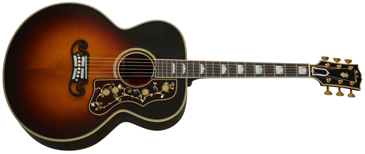 The Acoustic Custom Shop has recreated the King of the Flat-Tops. One of Gibson’s most storied models, this Historic Reissue instrument is hand-built in Gibson's celebrated Bozeman facility using the finest materials and styled after its late 1930s counterparts. Each is constructed with a select thermally aged Adirondack red spruce top with hot hide glue bracing, rosewood back and sides, and premium ebony for the fingerboard and bridge. No detail is left untouched: the bound fingerboard, vintage style script Gibson inlay, and unique pickguard add custom touches all over this authentic recreation.
