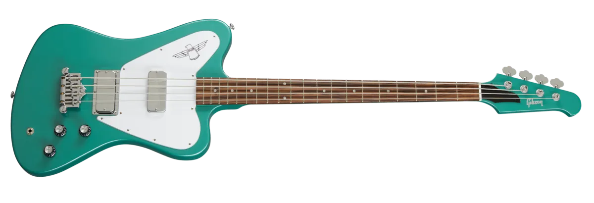 Ever since it was first released back in 1965, the Non-Reverse Thunderbird has been THE choice for forward-looking bassists who want to make their own path and steadfastly refuse to follow the crowd. The Non-Reverse Thunderbird's distinctive styling and huge, thunderous tone make it a standout on stage and in the studio. Now you have the opportunity to make one of these relatively rare 'birds your own with the release of the new Gibson USA Non-Reverse Thunderbird. Equipped with a Non-Reverse mahogany body and mahogany neck with a rosewood fretboard and 20 medium jumbo frets, each of the two Thunderbird pickups has a volume control, allowing you to use them separately, or to blend them in any amount you prefer. A master tone control rounds out the simple yet highly effective control layout. The three-ply white pickguard features the iconic Thunderbird graphic. The Non-Reverse Thunderbird is equipped with a Graph Tech® nut. A 3-point adjustable bridge provides a full range of adjustment for action and intonation, while Hipshot® Ultralite® tuning machines hold down the strings at the other end and deliver accurate and stable tuning while keeping headstock weight low to improve balance. Available in Inverness Green, Faded Pelham Blue, and Sparkling Burgundy, a hardshell case is included.