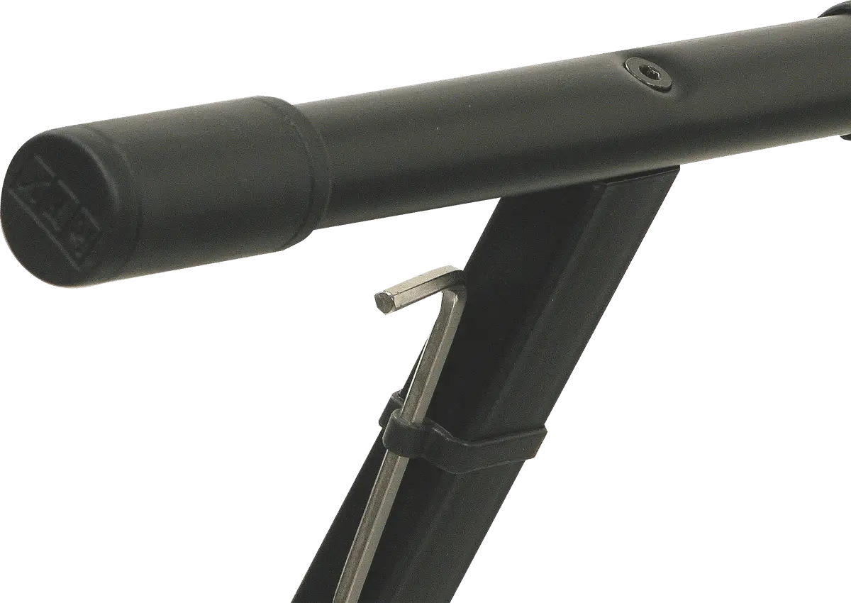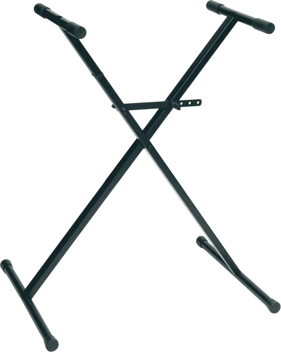 Black keyboard stand with safe-grip handles. Easy to set up with the included tool.